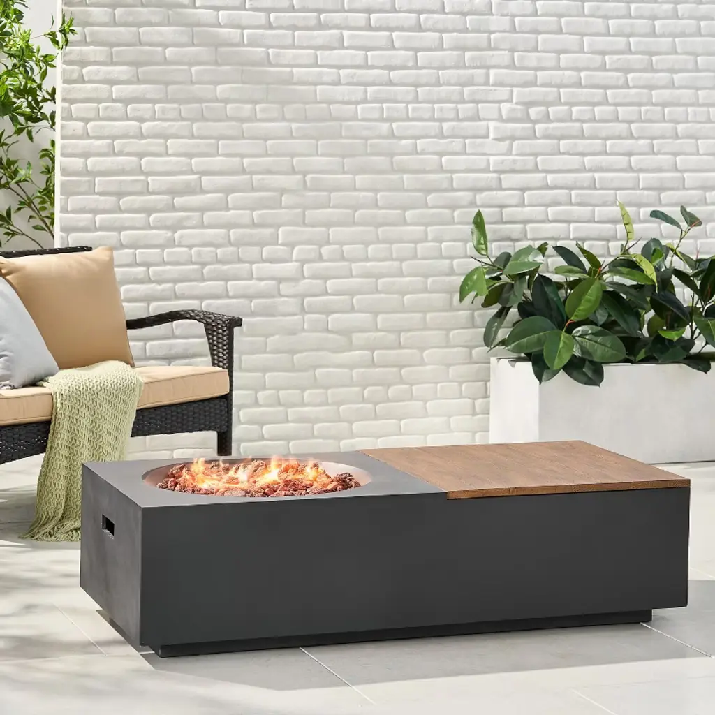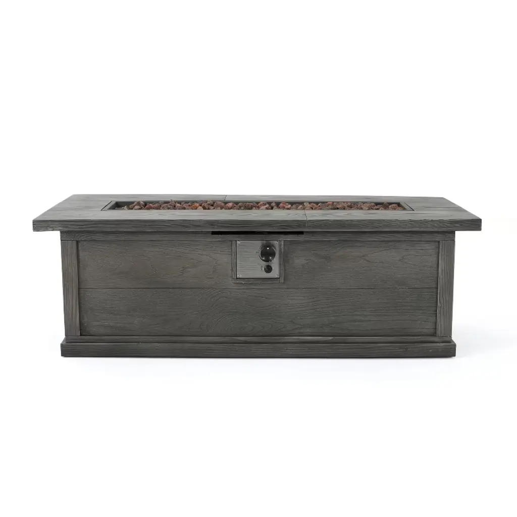 Upgrade your patio or backyard with this 56 inch rectangular fire pit, built from lightweight concrete with a wood-inspired texture. Delivering 50,000 BTU of heat, it combines modern functionality with rustic charm, creating an inviting centerpiece for outdoor gatherings, evening relaxation, and social entertaining.