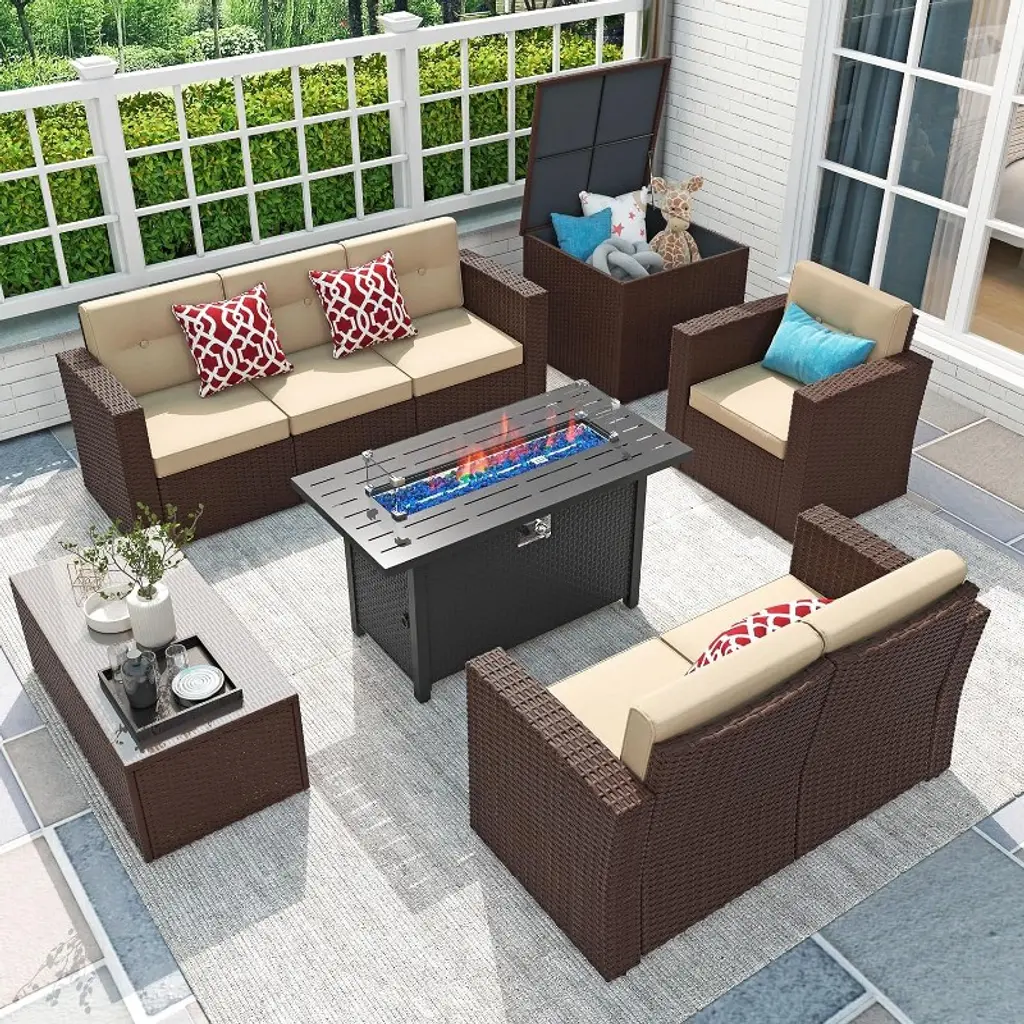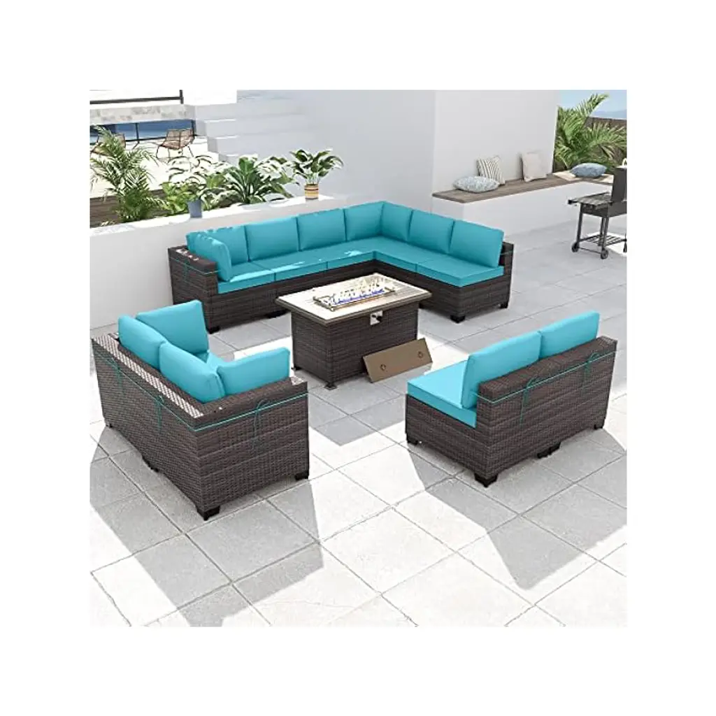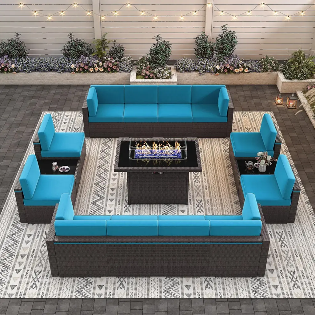7 Piece Patio Conversation Set With Fire Pit Table Blue