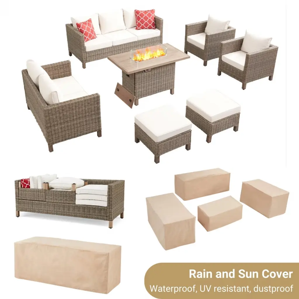 Transform your outdoor space with this premium wicker patio furniture set. Expertly crafted from handwoven, weather-resistant PE rattan and supported by a robust electrocoated steel frame, it withstands diverse elements while maintaining elegance. Designed for comfort with broad armrests and reinforced seating, the set also features effortless maintenance thanks to zippered cushion covers. Its modular design offers versatile configurations for your perfect outdoor oasis.
