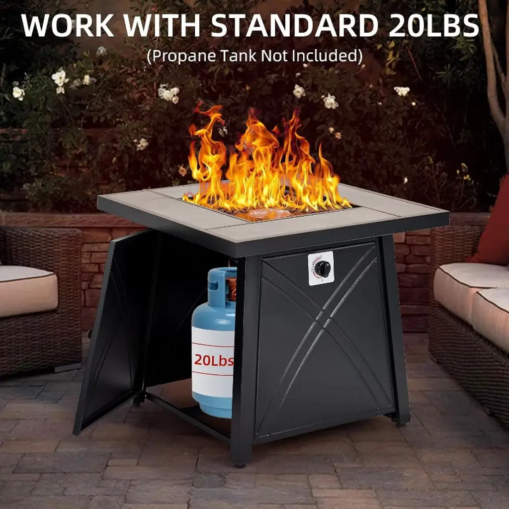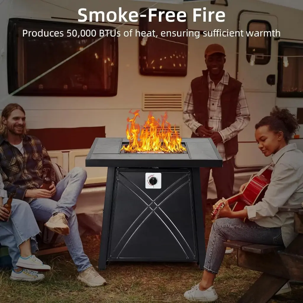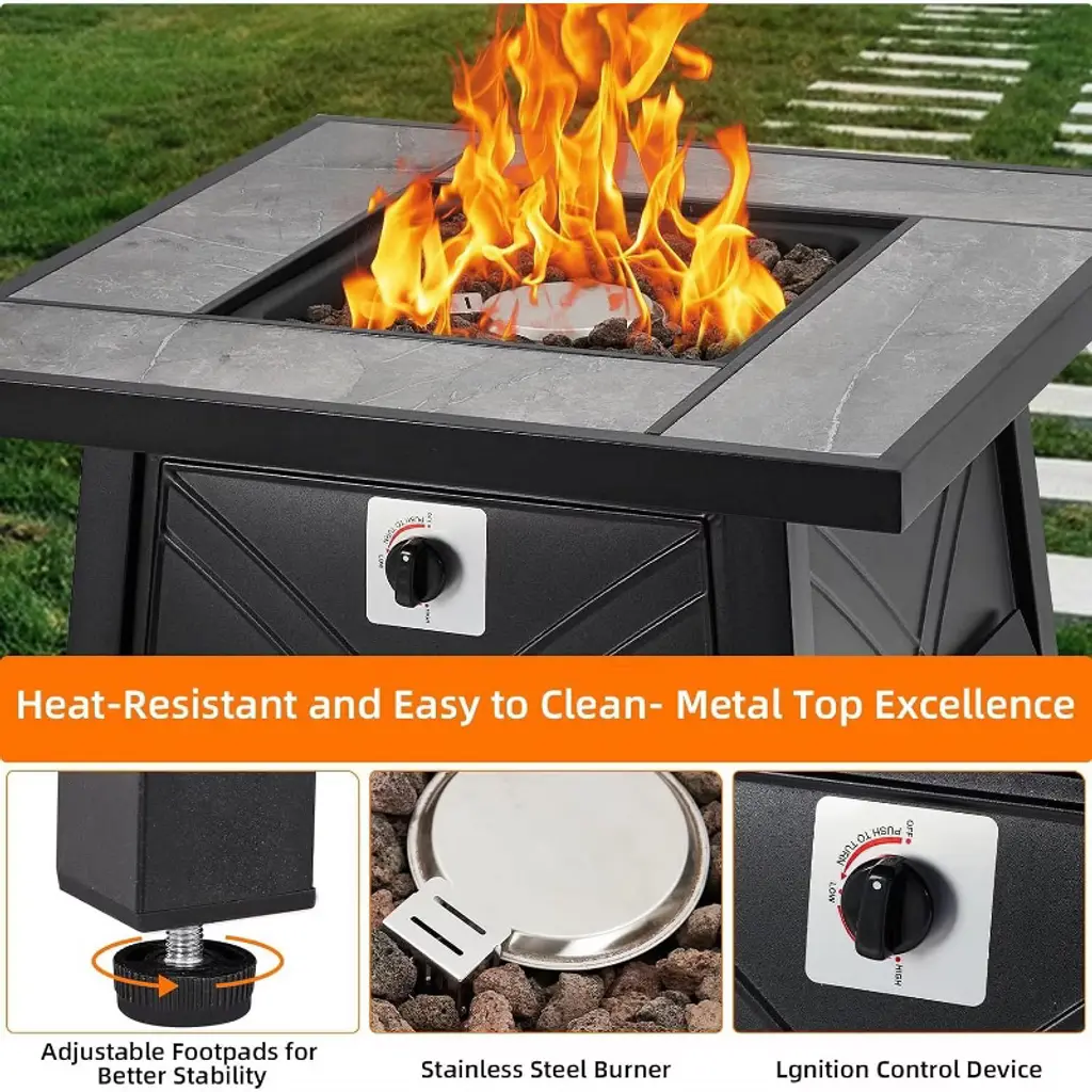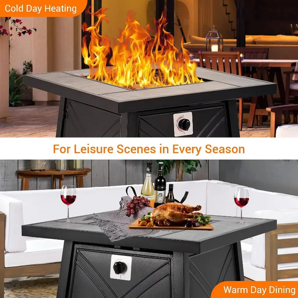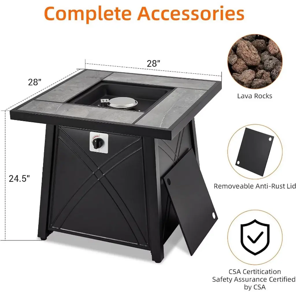 Acekool 28" Outdoor Gas Fire Pit Table - 50,000 Btu With Lid & Lava Rocks (Black)