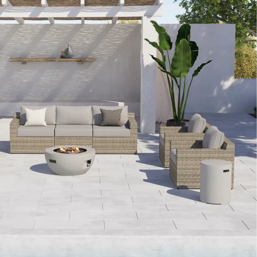 Boasting a powerful 40,000 BTU flame, this propane-fueled fire table transforms your patio into a haven of cozy retreat. Crafted from high-quality concrete, the fire table resists all weather elements and will preserve its beauty for many years to come. Features clean lines and a contemporary design, it elevates the visual appeal of your entire outdoor space. Comes fully assembled, and you can enjoy the warmth of the adjustable flame right out of the box.