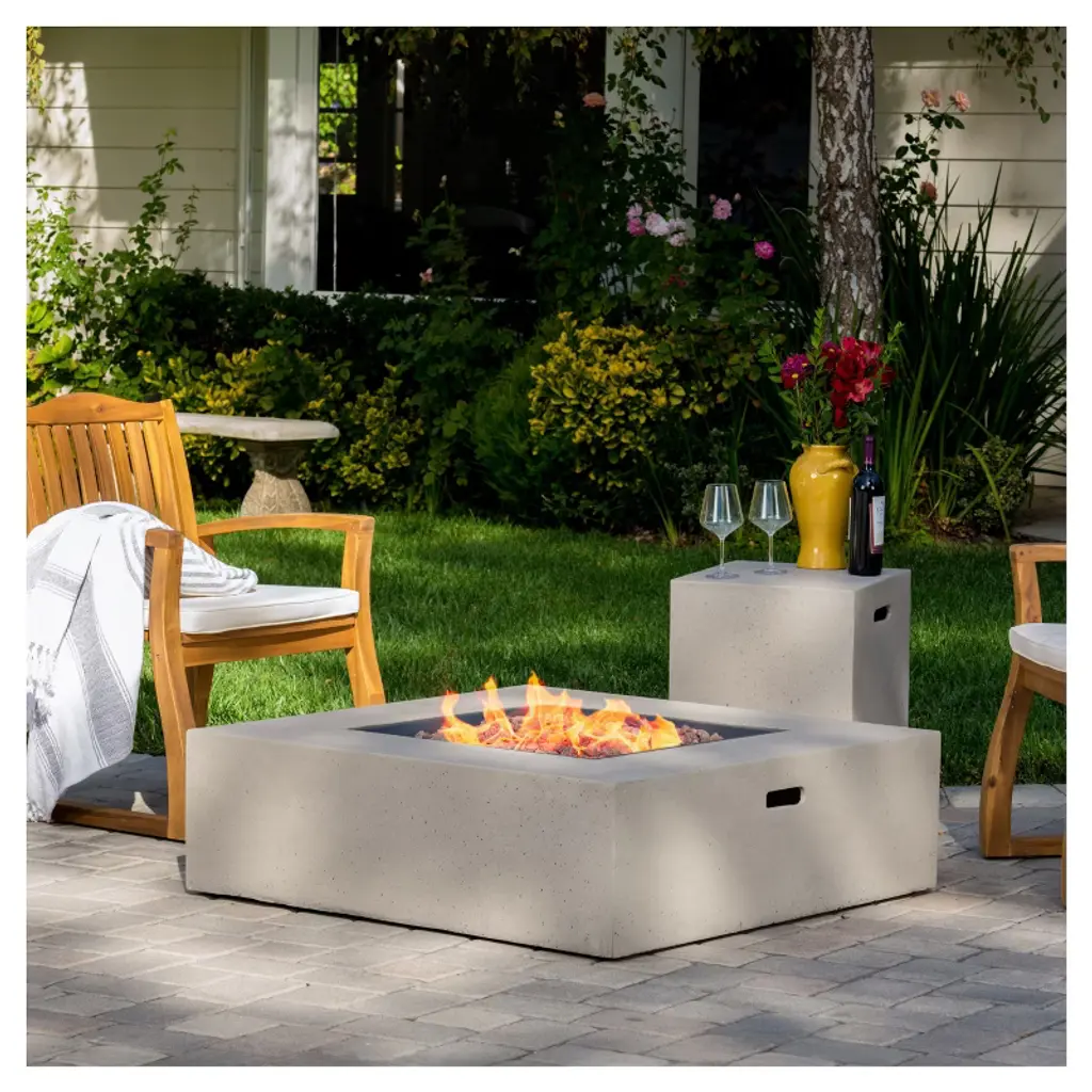 Aidan 40" Magnesium Oxide Gas Fire Pit Table With Tank Holder Square - Light Gray - Christopher Knight Home: Outdoor Heating, No Assembly Required