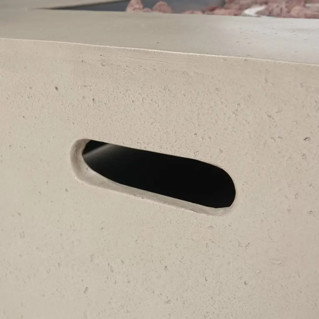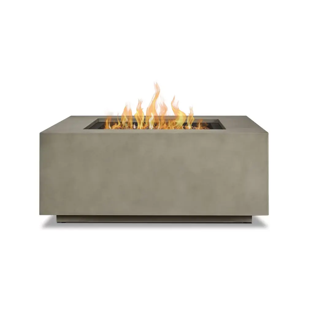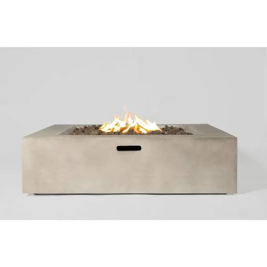 Take in the view of warm, flickering flames against the night sky. With 50,000 BTU and clean, straight lines built from smooth lightweight concrete, our propane gas fire pit not only offers an incredible upgrade in style but is also perfect for parties due to its easy seating arrangement. From intimate conversations around a cozy fire to stargazing on cool summer nights, this square fire pit will have no trouble gathering everyone together for hours of quality time. Please note that tank holder is NOT included.MODERN DESIGN: With clean, precise lines, our fire pit is the ideal modern accessory for your interior space. Finished with a smooth concrete surface and simplistic design, this piece not only offers a chic, minimalistic look but also provides incredible structure.LIGHTWEIGHT CONCRETE: This square fire pit is constructed with lightweight concrete for a smooth look. This provides a highly durable structure that can hold a substantial amount of weight.50,000 BTU: Featuring a BTU of 50,000, our fire pit allows easy seating arrangement for you and your guests, providing light and warmth all around during those chilly evenings. Please note that this fire pit is propane gas only.DIMENSIONS: Choose an accessory that is the perfect size for you and your furniture. This fire pit is 40.00” W x 40.00” D x 12.50” H. You will love how much your space can transform with the simple addition of this charming fire pit.NO ASSEMBLY REQUIRED: No assembly is required for this fire pit. Simply place the lava rocks in the pit without covering the burner, and then plug in your standard size propane tank and enjoy your fire pit. Please note that tank holder is NOT included.