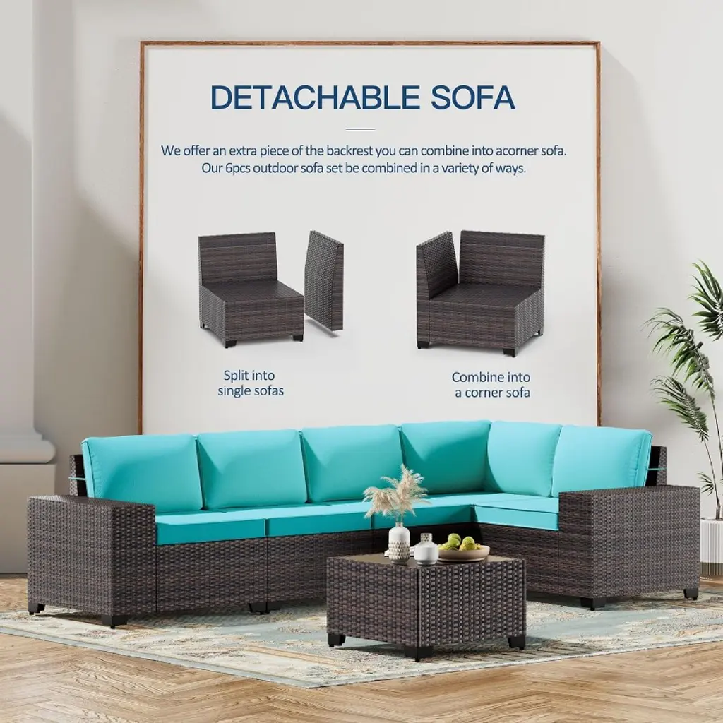 This high-quality ALAULM outdoor woven rattan sofa set brings joy to your outdoor living! Hand-woven PE rattan is waterproof and fade-resistant, while the powder-coated steel frame ensures stability and balance. High-density fabric makes the cushions and pillows fade-resistant and waterproof, and the thickened 4-inch memory foam core effectively relieves body pressure! Modular patio sofa—your one-of-a-kind choice! Please Note: The product will be shipped in 6 separate packages, and delivery times may vary.