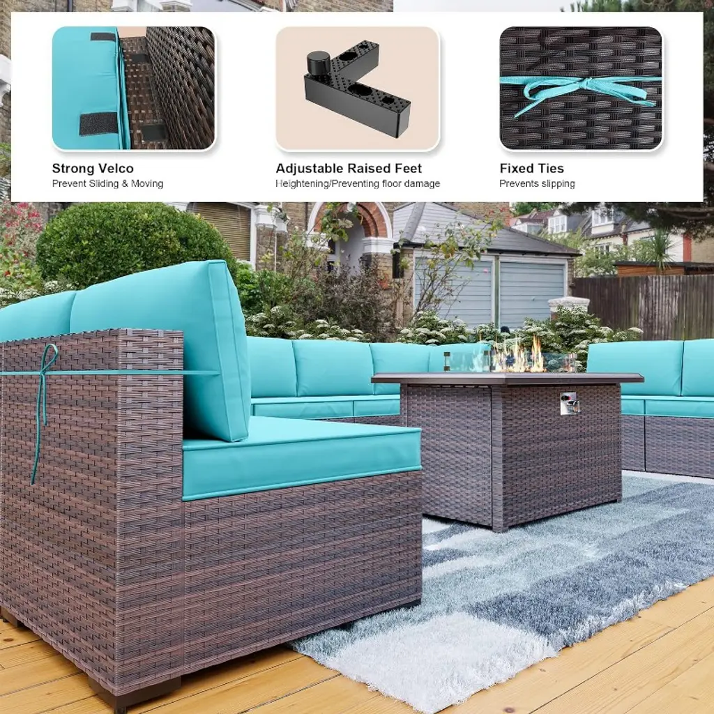Alaulm 13pcs Outdoor Patio Furniture Set,rattan Sectional Sofa Patio Conversation Sets With Gas Propane Fire Pit Table,swivel Chairs Set,blue