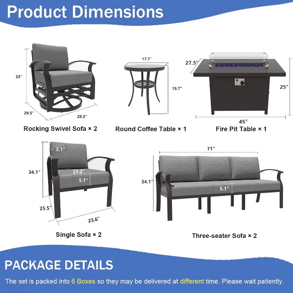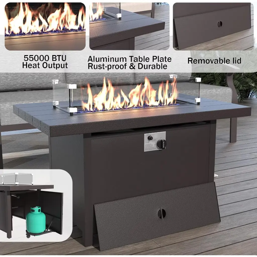 Alaulm Aluminum Patio Furniture Set With Propane Fire Pit Table 10-seat Metal Outdoor Furniture Grey