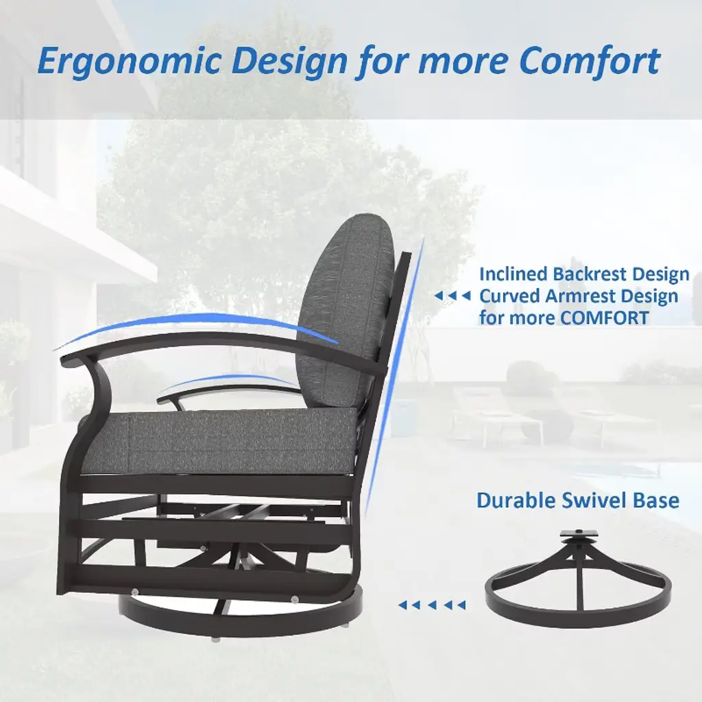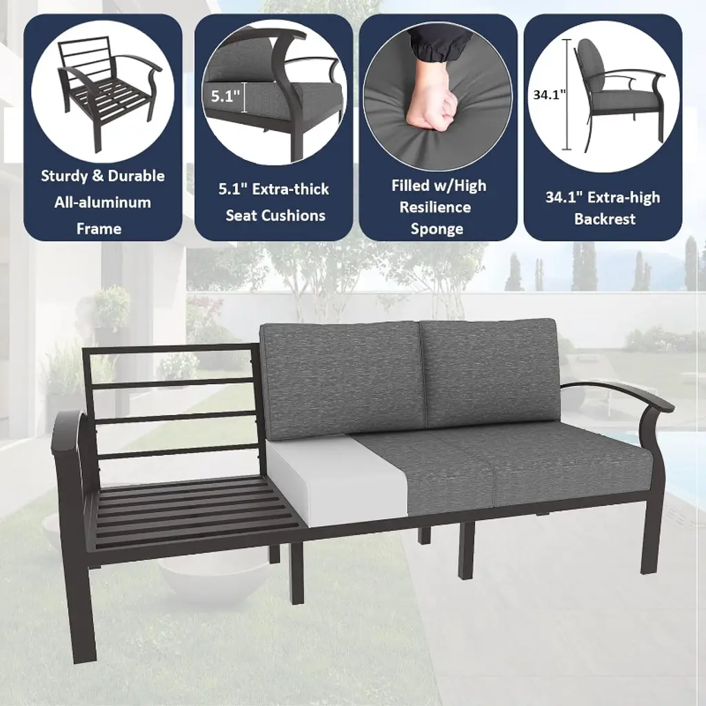 This outdoor furniture patio set creates uniquely enjoyable leisure moments for you! Featuring an upgraded powder-coated lightweight all-aluminum alloy frame combined with an ergonomic curved design that provides ample lumbar support, paired with 5.1-inch high-resilience memory foam cushions, the ALAULM outdoor furniture patio set delivers a comfortable and relaxing outdoor experience! Please Note: The product will be shipped in 6 separate packages, and delivery times may vary.