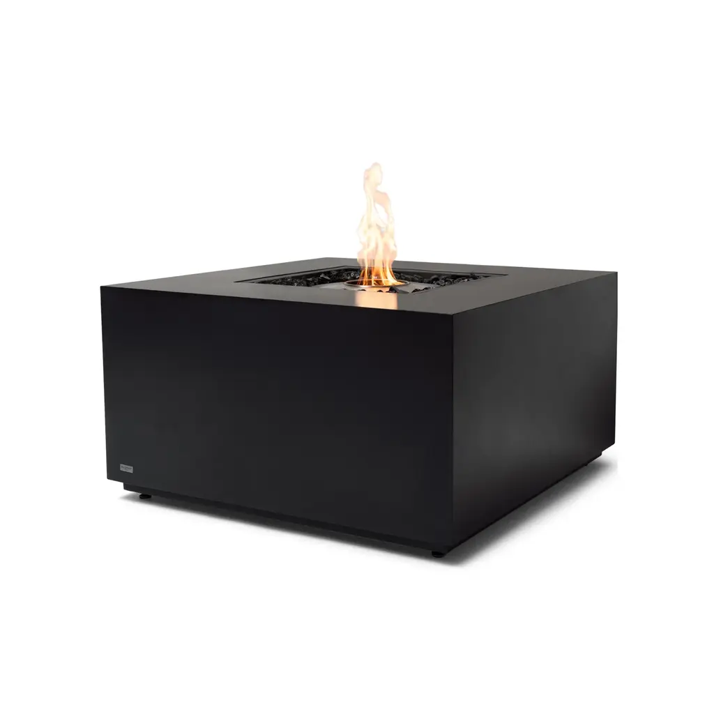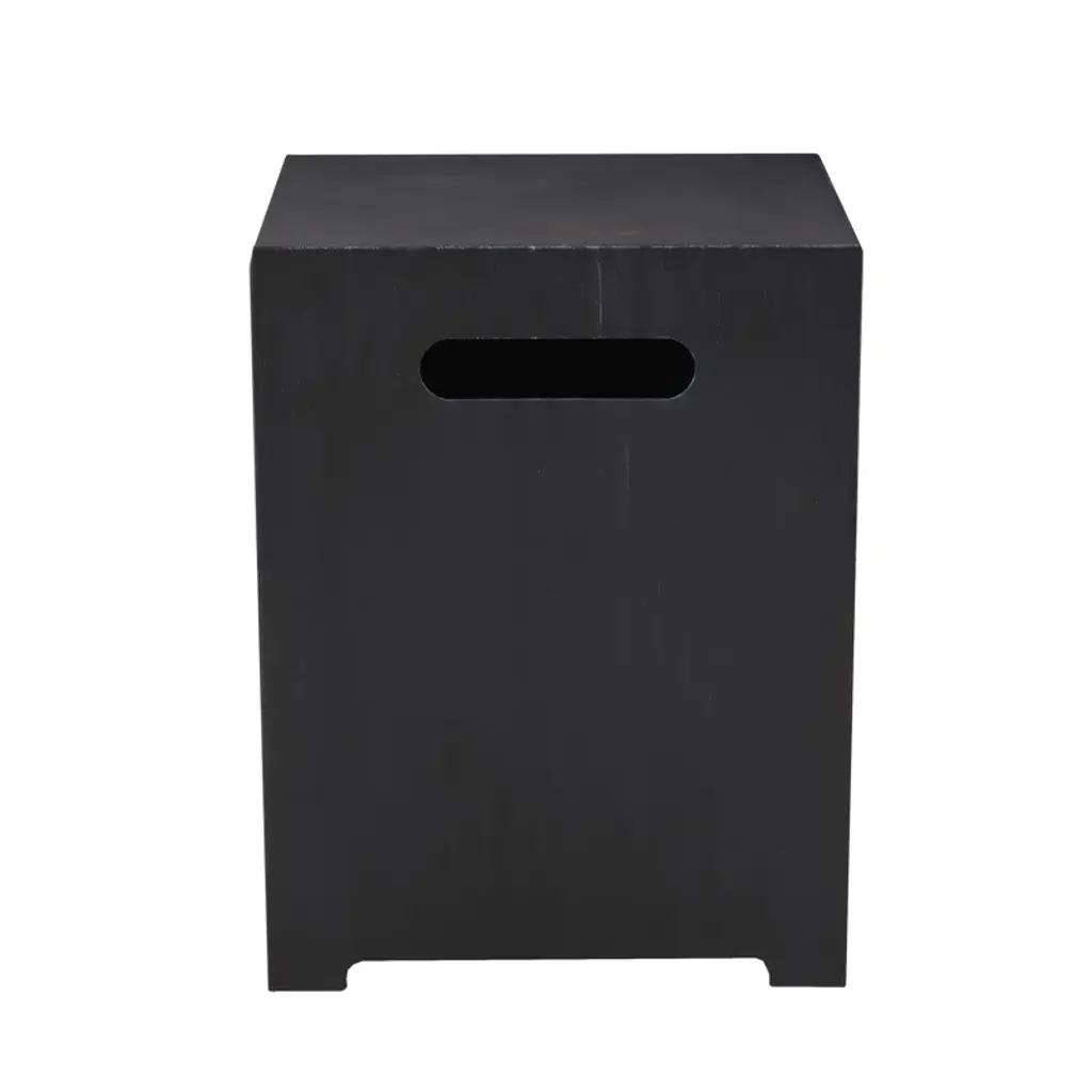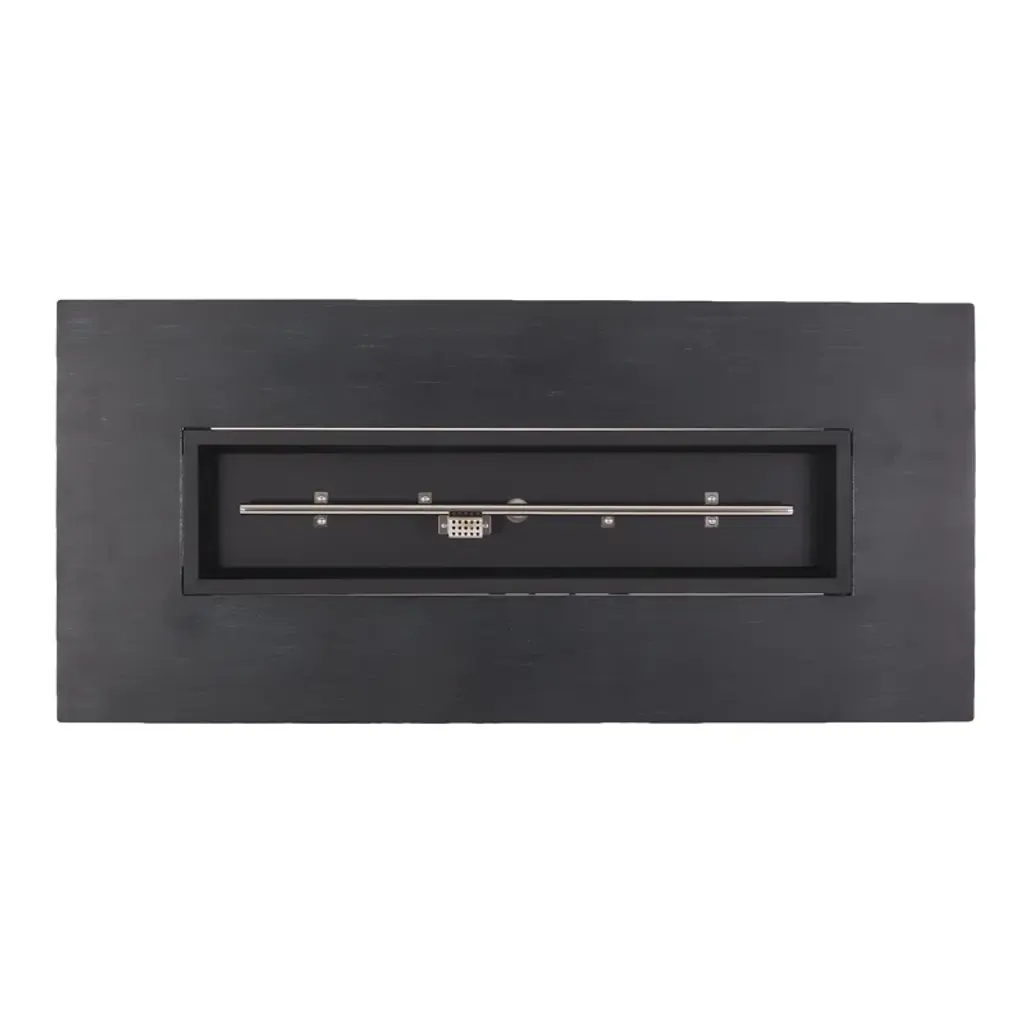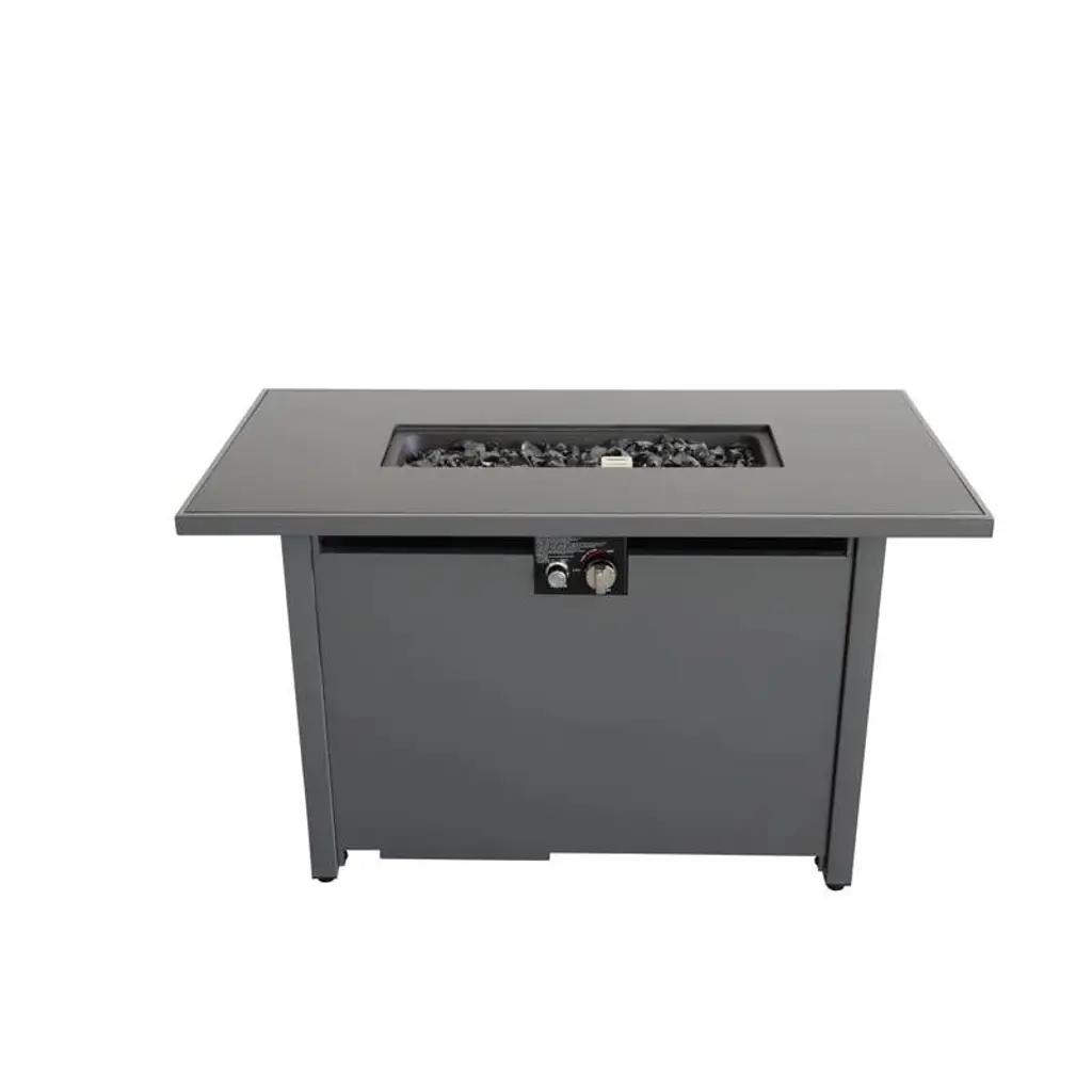 Make your backyard the place where everyone wants to be with this outdoor fire pit. The weather- and heat-resistant pit and matching tank holder feature rectangular silhouettes crafted from powder-coated iron with a brushed black finish. A push button operates the on/off and the adjustable flame and the included cover keeps the lava rocks dry when not in use. This fire pit is for outside use only and should not be placed on a wooden deck. Please note: The propane tank is sold separately.