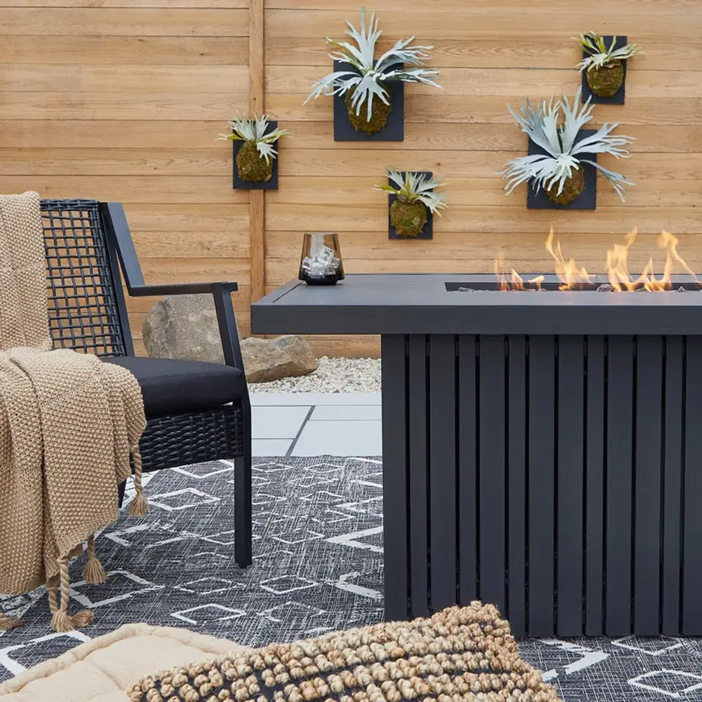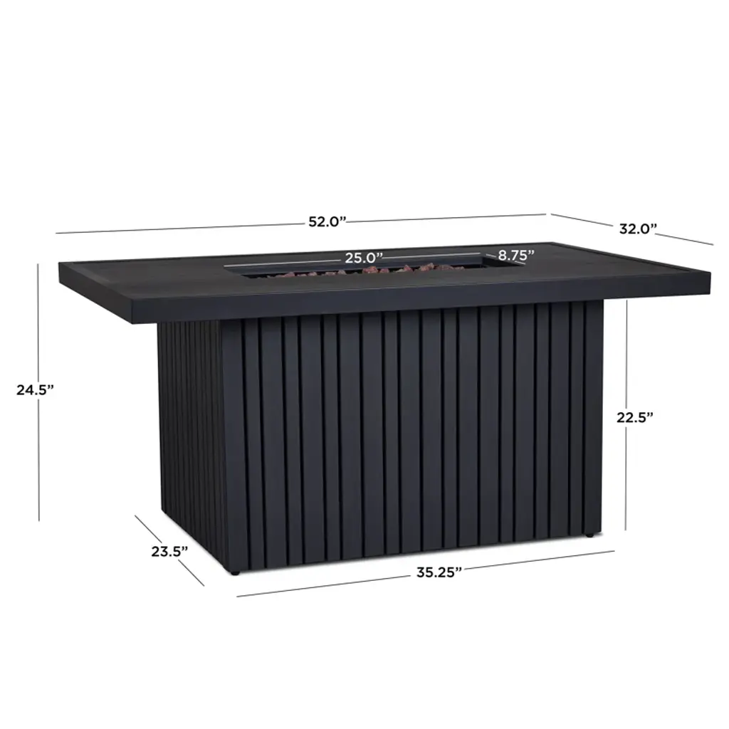 Calvin 52" Rectangle Metal Propane Fire Pit Table With Hidden Tank In Black Coral By Real Flame