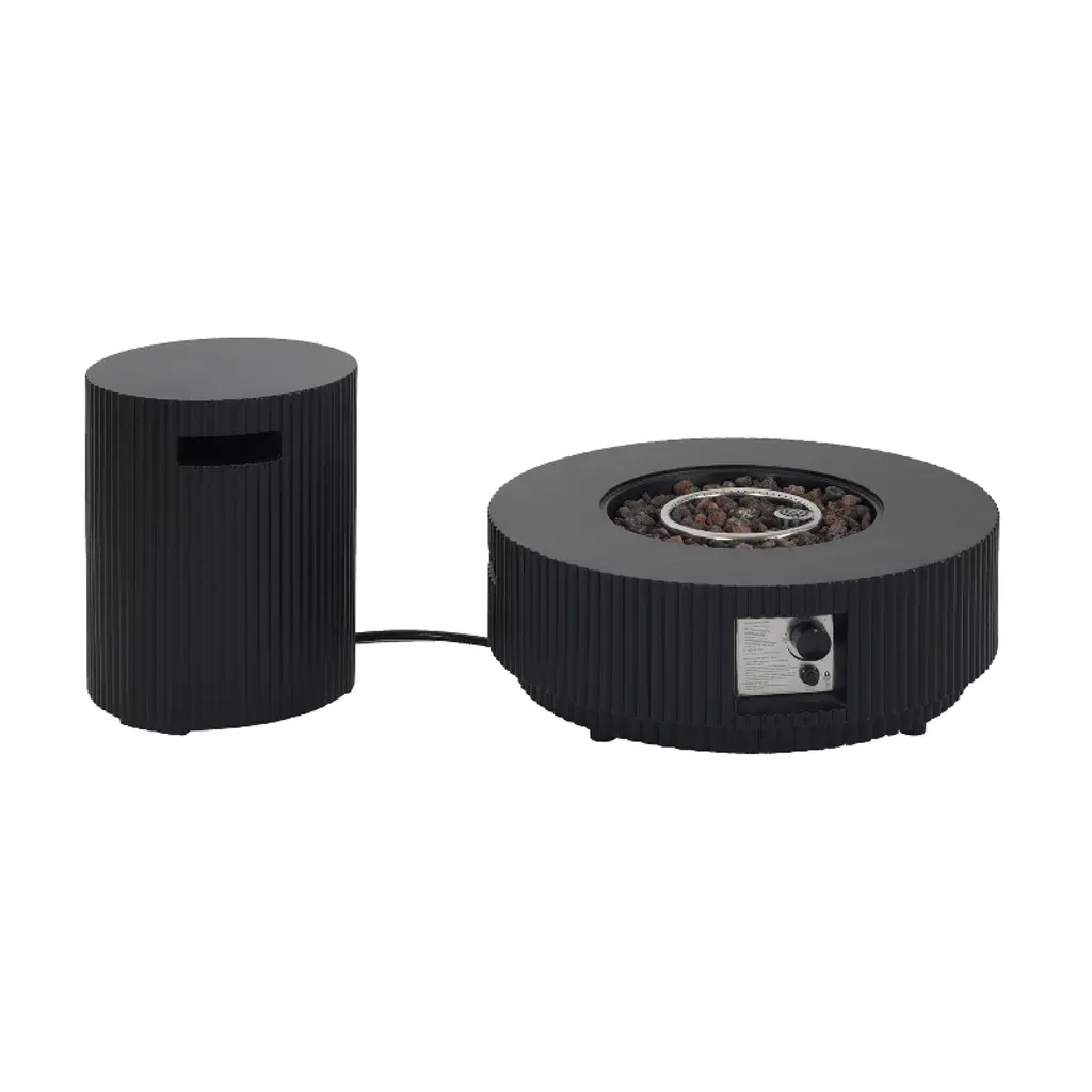 Upgrade your outdoor space with this beautifully designed fire pit table that offers both function and style. Made from durable lightweight concrete, it features a stone-like finish and a 2-in-1 design that doubles as a coffee table with the lid on. With 40,000 BTU of heat output and adjustable flame control, it’s ideal for cozy gatherings. Accessories like lava rocks, a tank holder, and a protective cover are included. No assembly is required—just unbox and enjoy. Material: Lightweight Concrete 40,000 BTU Propane Gas Only No Assembly Required Fire Pit Table Dimensions: 30.00 inches deep x 30.00 inches wide x 11.00 inches high Tank Holder Dimensions: 16.00 inches deep x 16.00 inches wide x 20.00 inches high