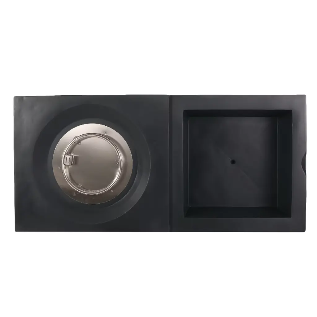 Illuminate your evenings with the cozy warmth of our 50,000 BTU fire pit. Perfect for everything from stargazing to heartfelt conversations, this versatile outdoor centerpiece promises hours of enjoyment. Featuring a fire bowl on one side and a removable tabletop on the other, it combines style and functionality effortlessly. The tabletop boasts a wood-like finish and conceals a hidden storage compartment, adding a touch of convenience to its chic, lightweight concrete design. Material: Lightweight Concrete Color: Dark Gray Tabletop Color: Natural Brown 50,000 BTU Propane Gas Only No Assembly Required Dimensions: 26.50 inches deep x 56.25 inches wide x 15.00 inches high
