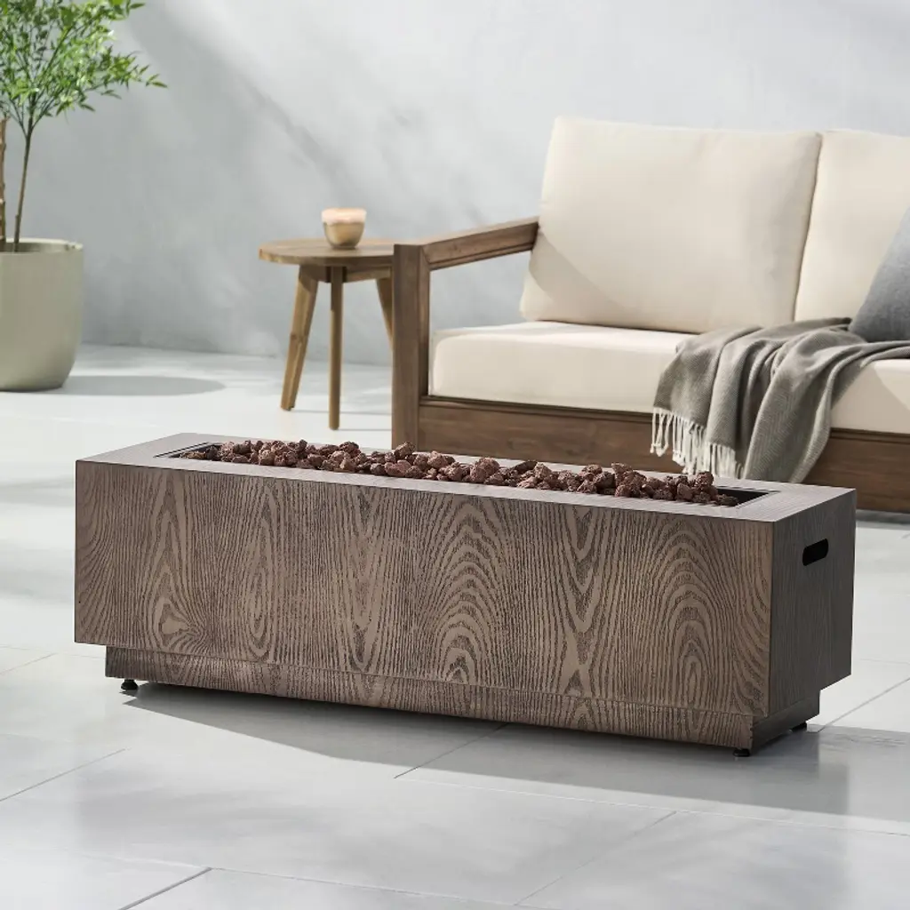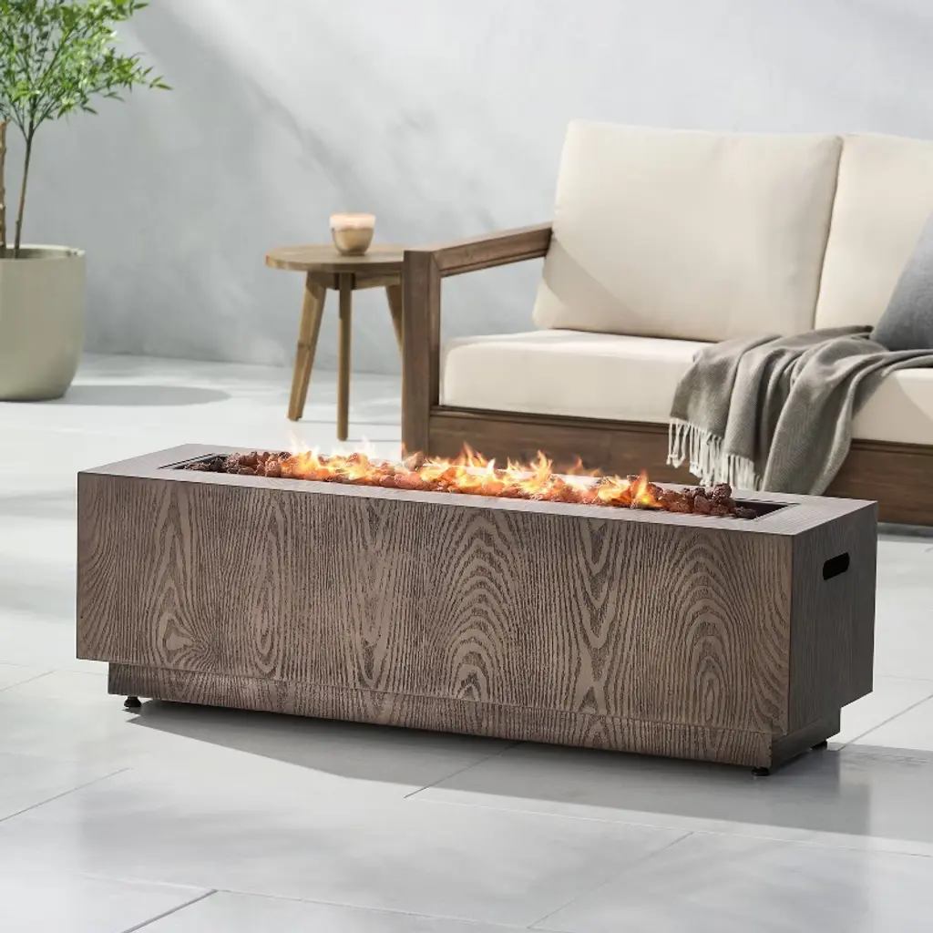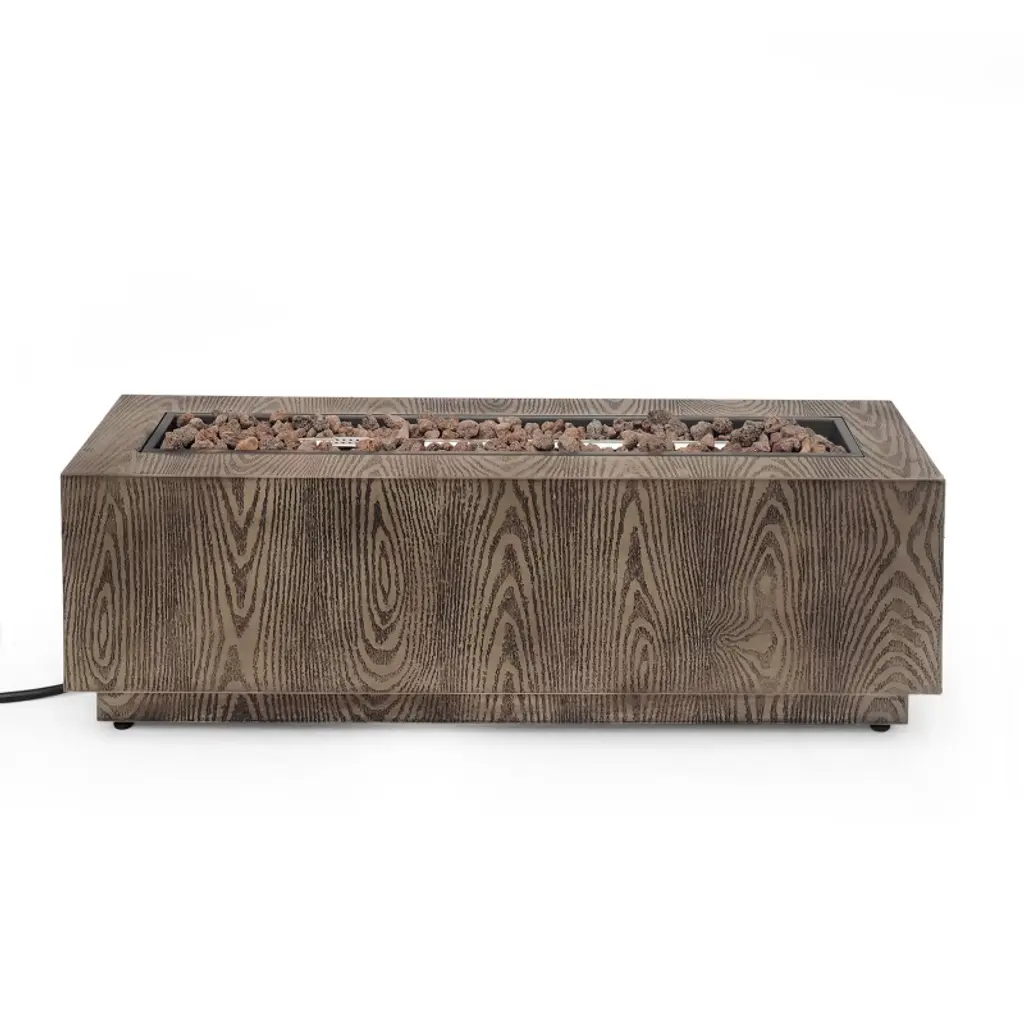 Christopher Knight Home Wellington Outdoor 50000 Btu Rectangular Fire Pit Wood Pattern Brown: No Assembly, Push Button Ignition