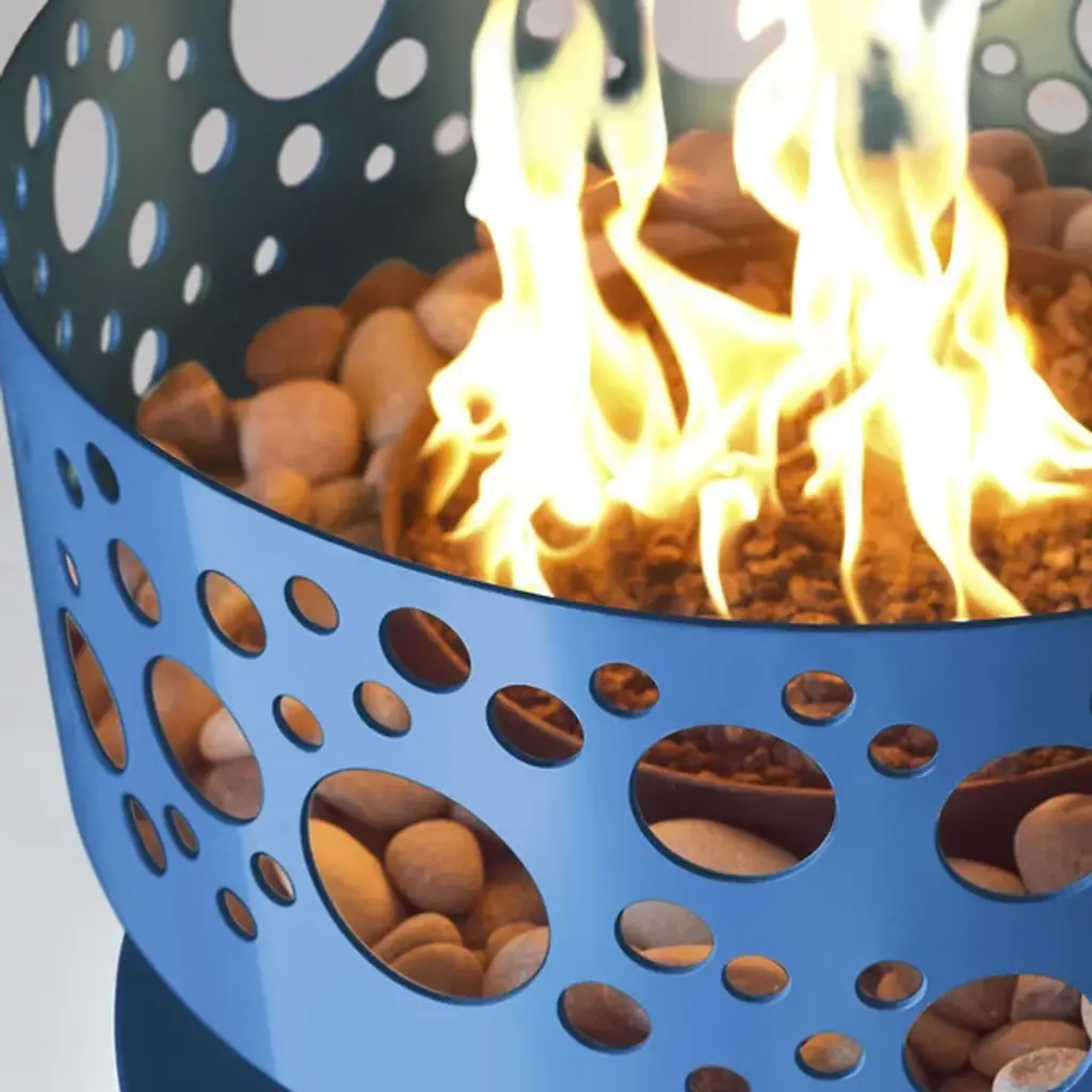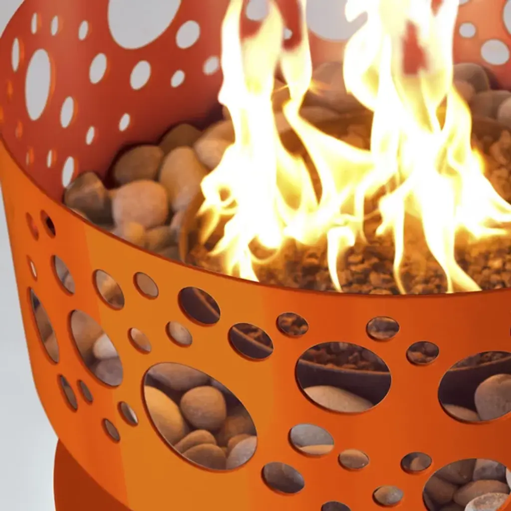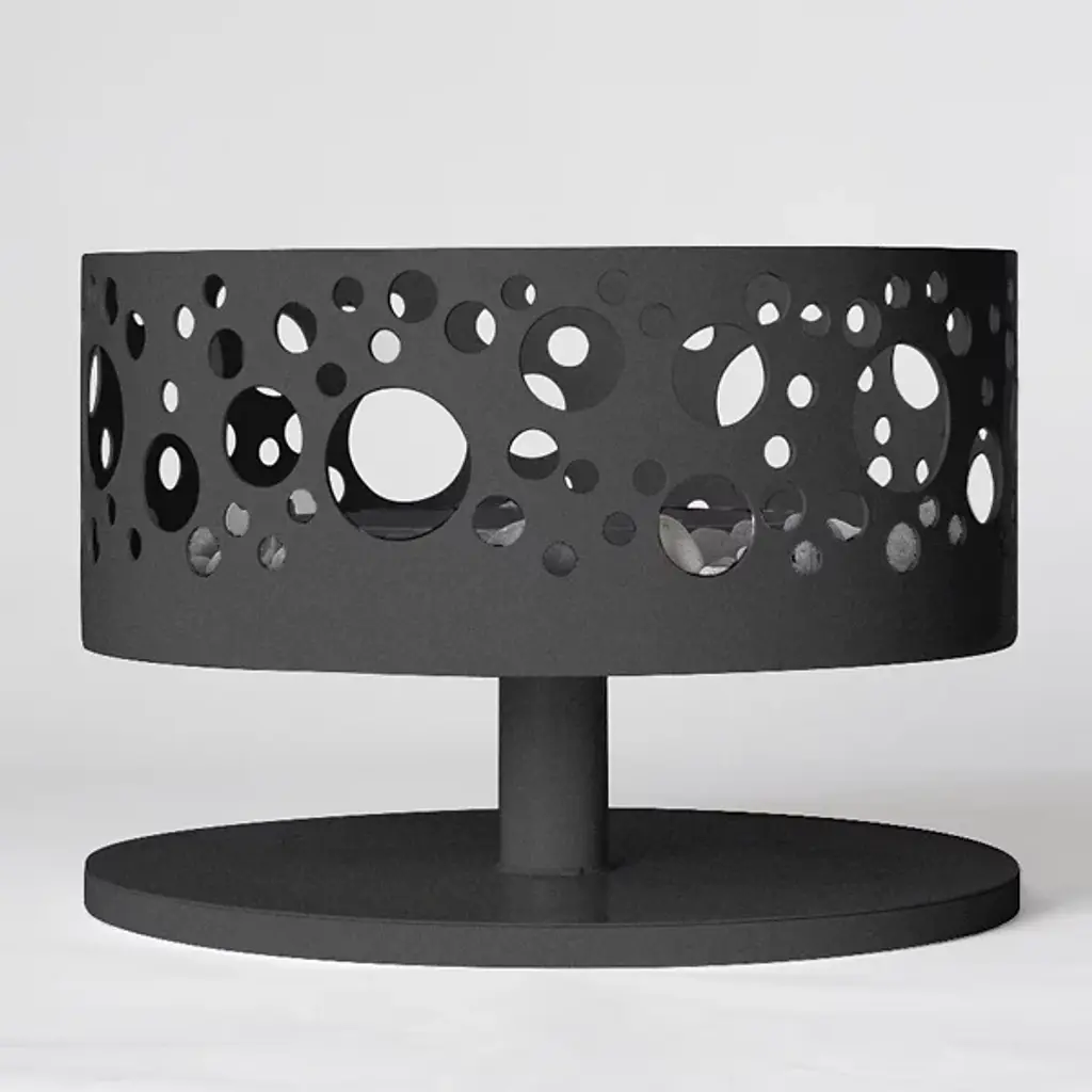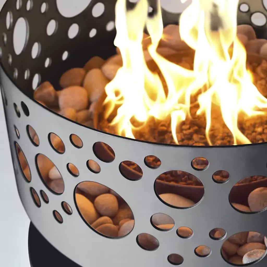 Bring an elegant, unforgettable appeal to exterior gathering spaces with the Circle Solfire Outdoor Fire Pit from Modfire. At once elegant and enduring, with a mid-century modern presence, it’s handcrafted with stainless steel, using a slender column to elevate a central burner at the heart of a drum-shaped housing. A series of circular cutouts of varying sizes dot the exterior drum, offering a whimsical accent, while an inner layer of rock or fireglass can add a natural, personalized presence to the fireplace. The fire within can burn constantly for eight hours, casting an expressive wash of light to all sides.