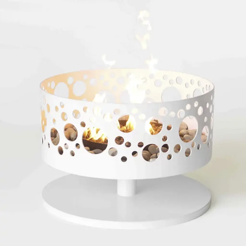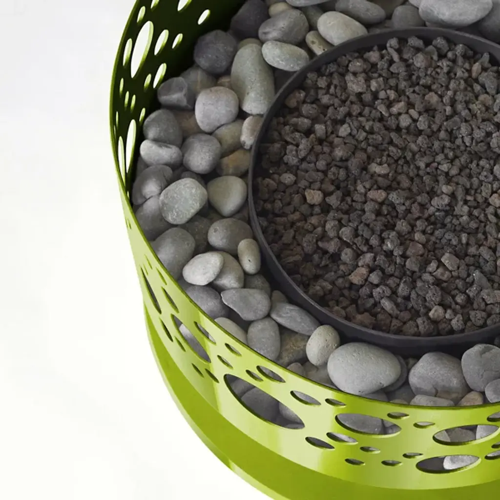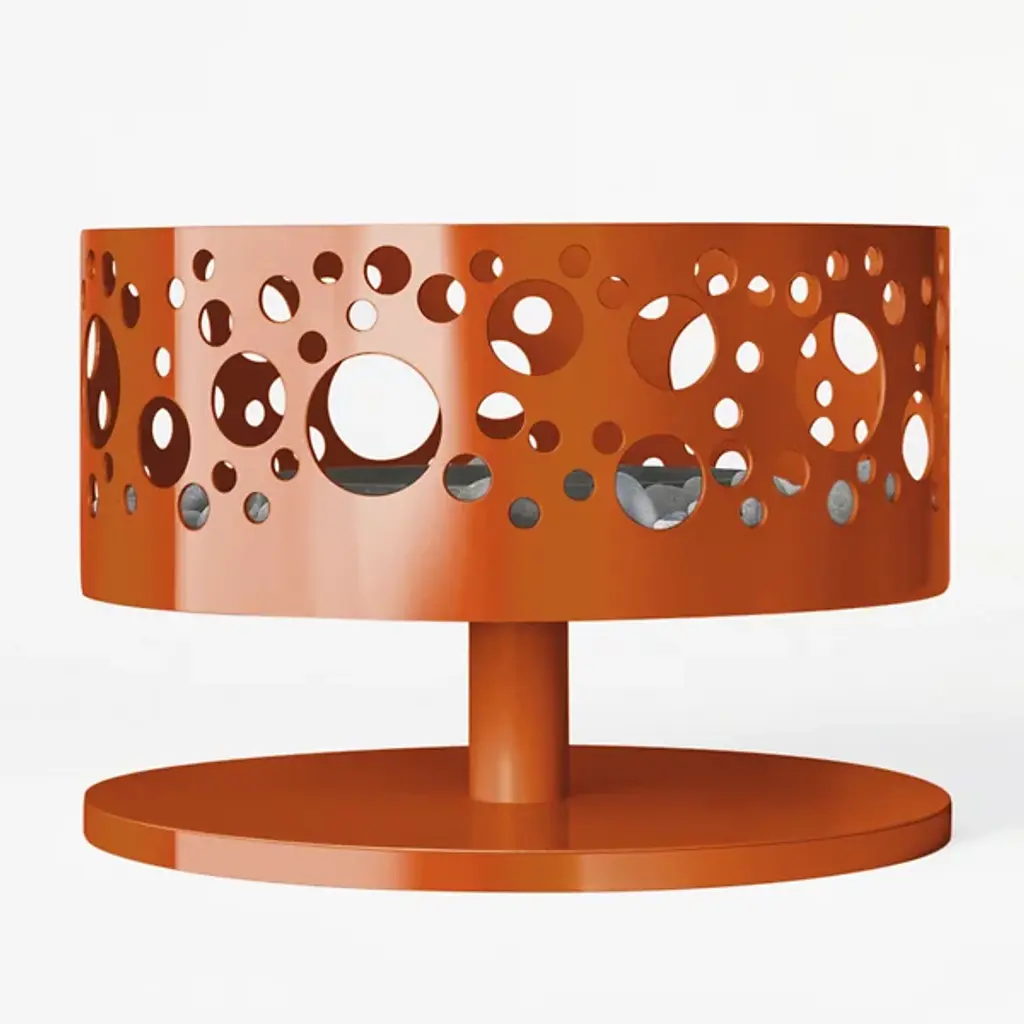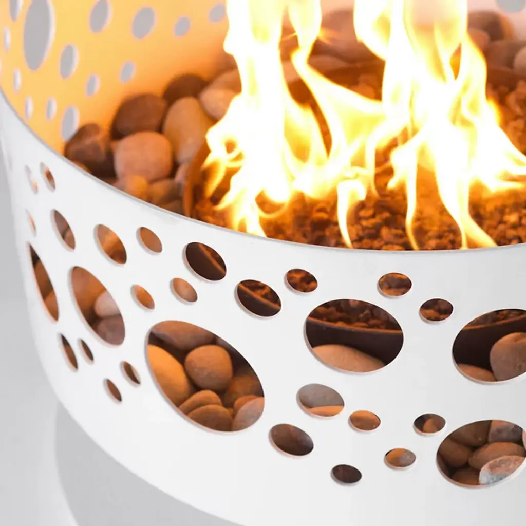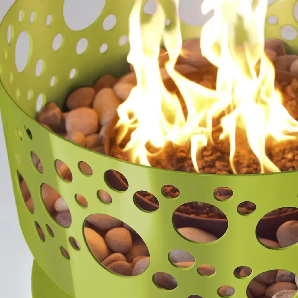 Bring an elegant, unforgettable appeal to exterior gathering spaces with the Circle Solfire Outdoor Fire Pit from Modfire. At once elegant and enduring, with a mid-century modern presence, it’s handcrafted with stainless steel, using a slender column to elevate a central burner at the heart of a drum-shaped housing. A series of circular cutouts of varying sizes dot the exterior drum, offering a whimsical accent, while an inner layer of rock or fireglass can add a natural, personalized presence to the fireplace. The fire within can burn constantly for eight hours, casting an expressive wash of light to all sides.