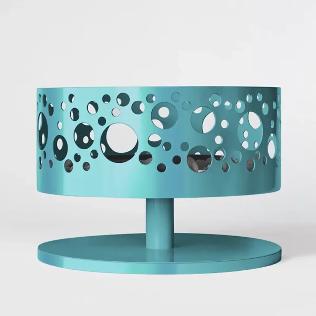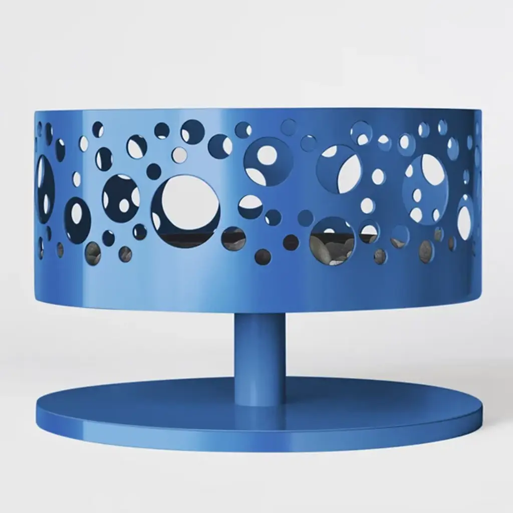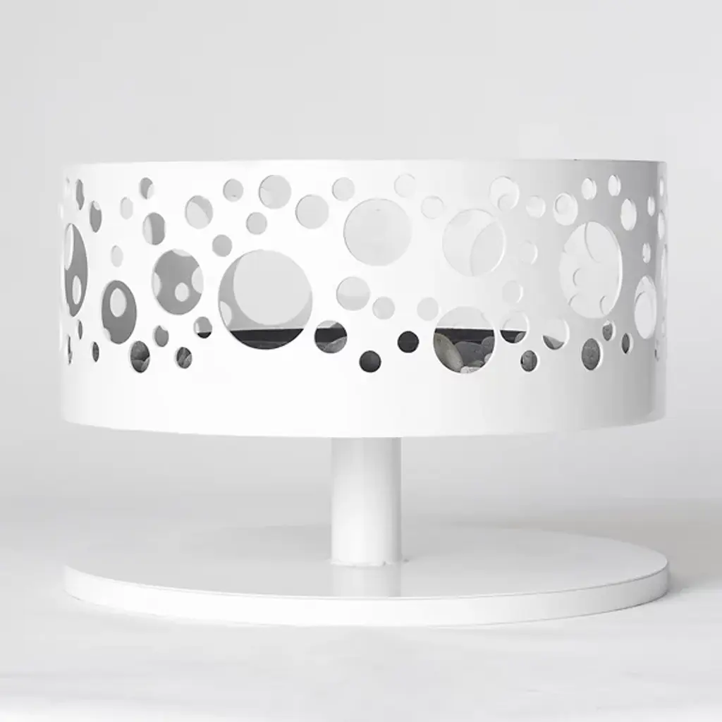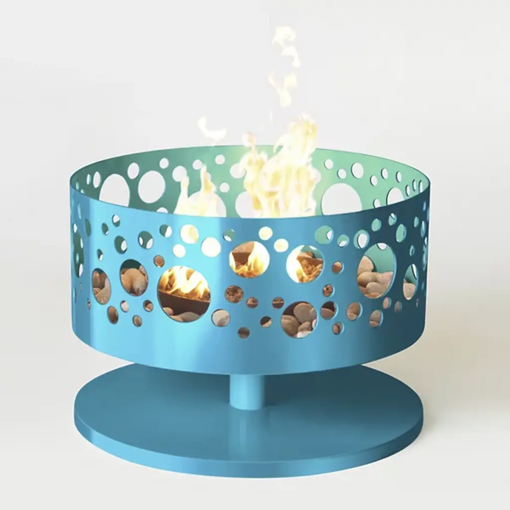 Bring an elegant, unforgettable appeal to exterior gathering spaces with the Circle Solfire Outdoor Fire Pit from Modfire. At once elegant and enduring, with a mid-century modern presence, it’s handcrafted with stainless steel, using a slender column to elevate a central burner at the heart of a drum-shaped housing. A series of circular cutouts of varying sizes dot the exterior drum, offering a whimsical accent, while an inner layer of rock or fireglass can add a natural, personalized presence to the fireplace. The fire within can burn constantly for eight hours, casting an expressive wash of light to all sides.