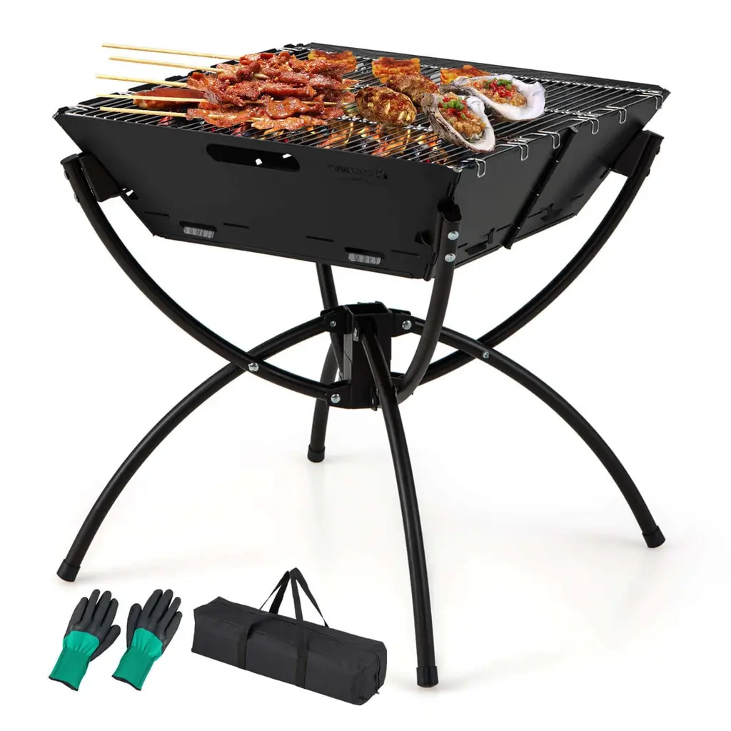 Costway 3-in-1 Portable Charcoal Grill Folding Camping Fire Pit With Carrying Bag & Gloves Black