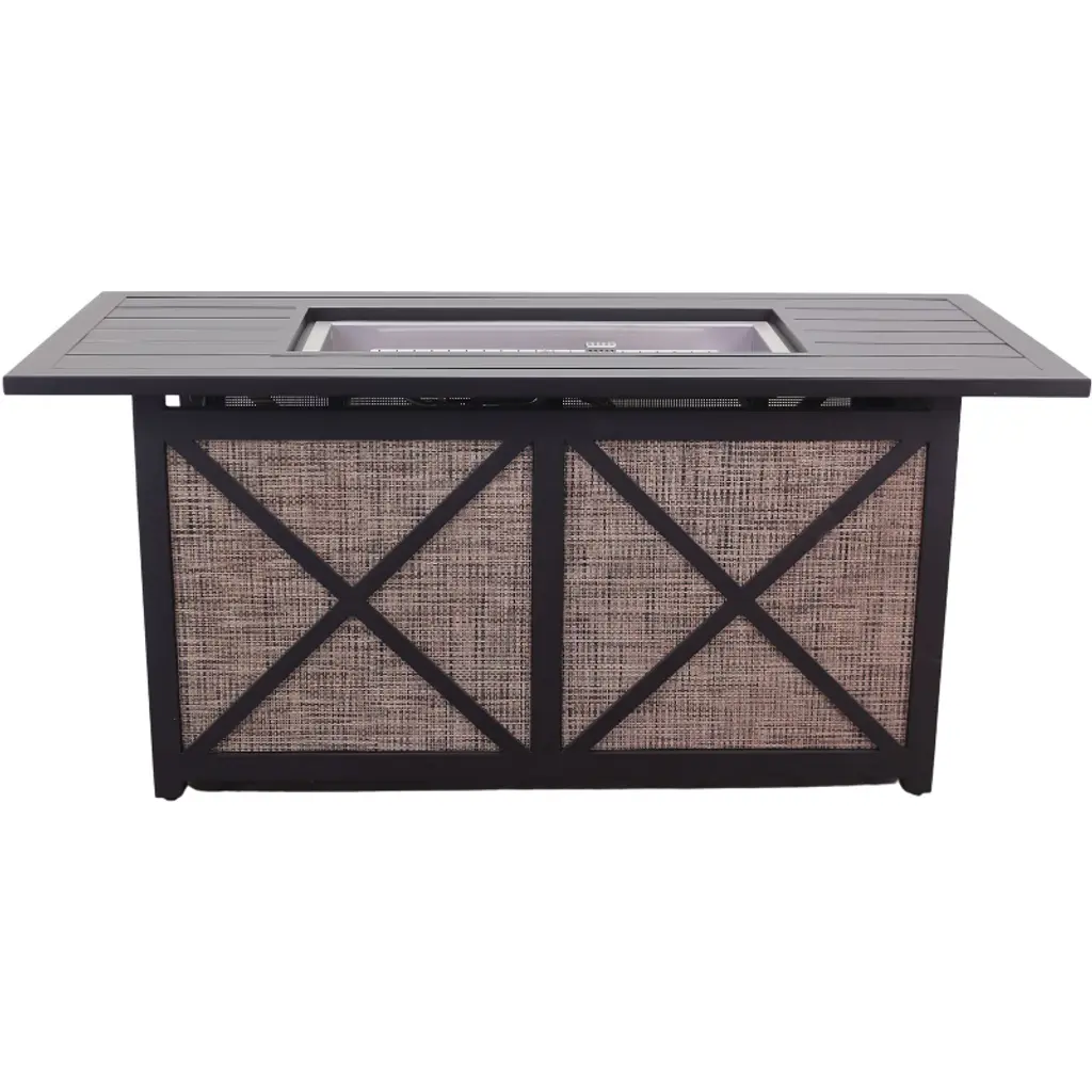 Courtyard Casual Santa Fe 5 Pc Rectangle Fire Pit Set With Wicker Chairs Includes One Rectangle Fire Pit And Four Wicker Chairs
