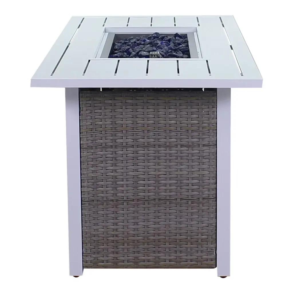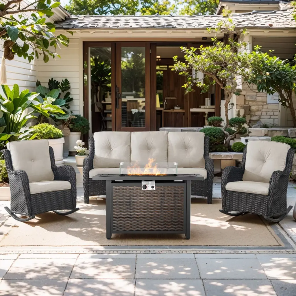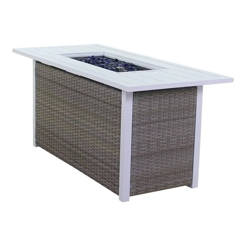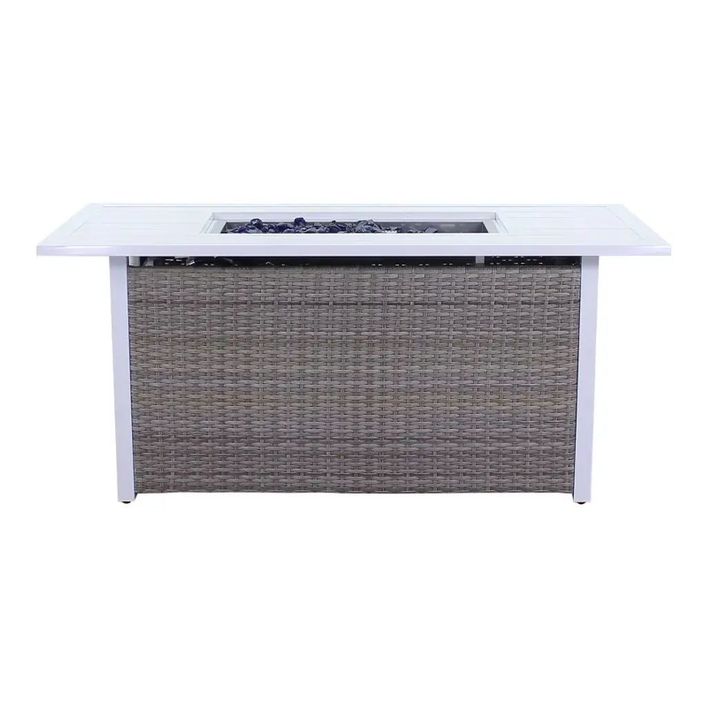 Courtyard Casual Santa Fe 5 Pc Rectangle Fire Pit Set With Wicker Spring Chairs Includes One Rectangle Fire Pit And Four Wicker Spring Chairs