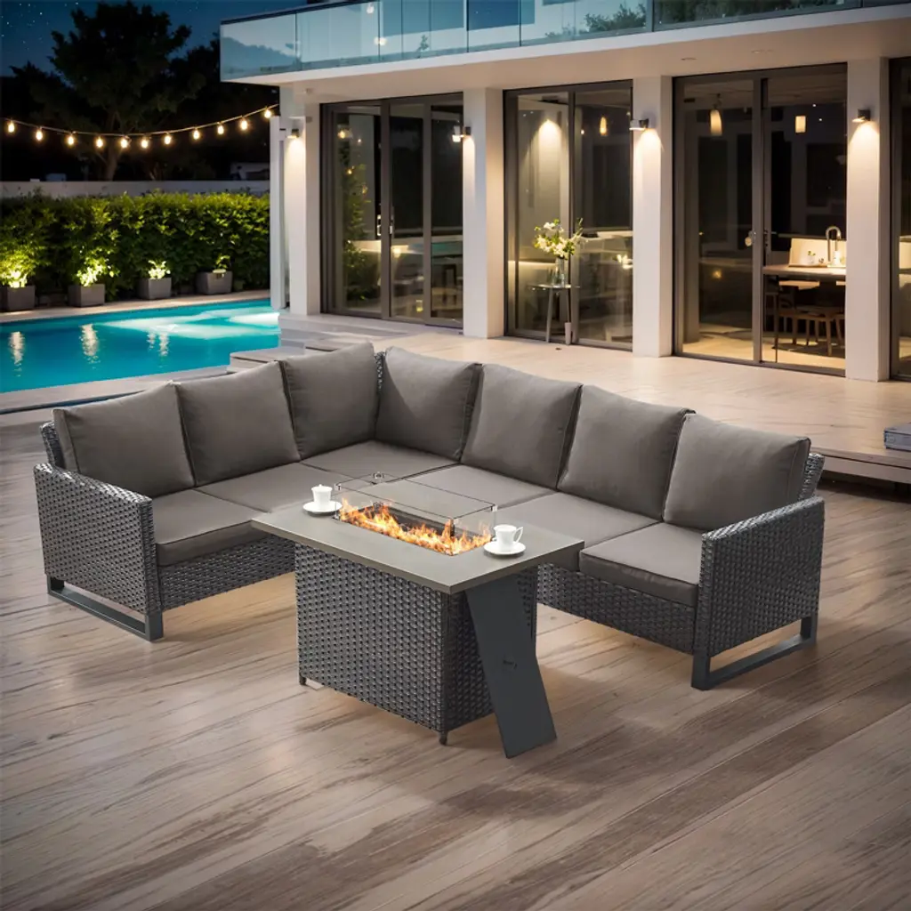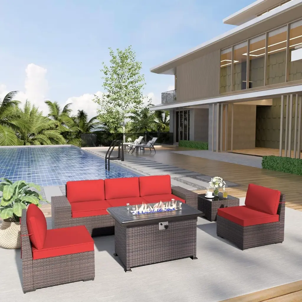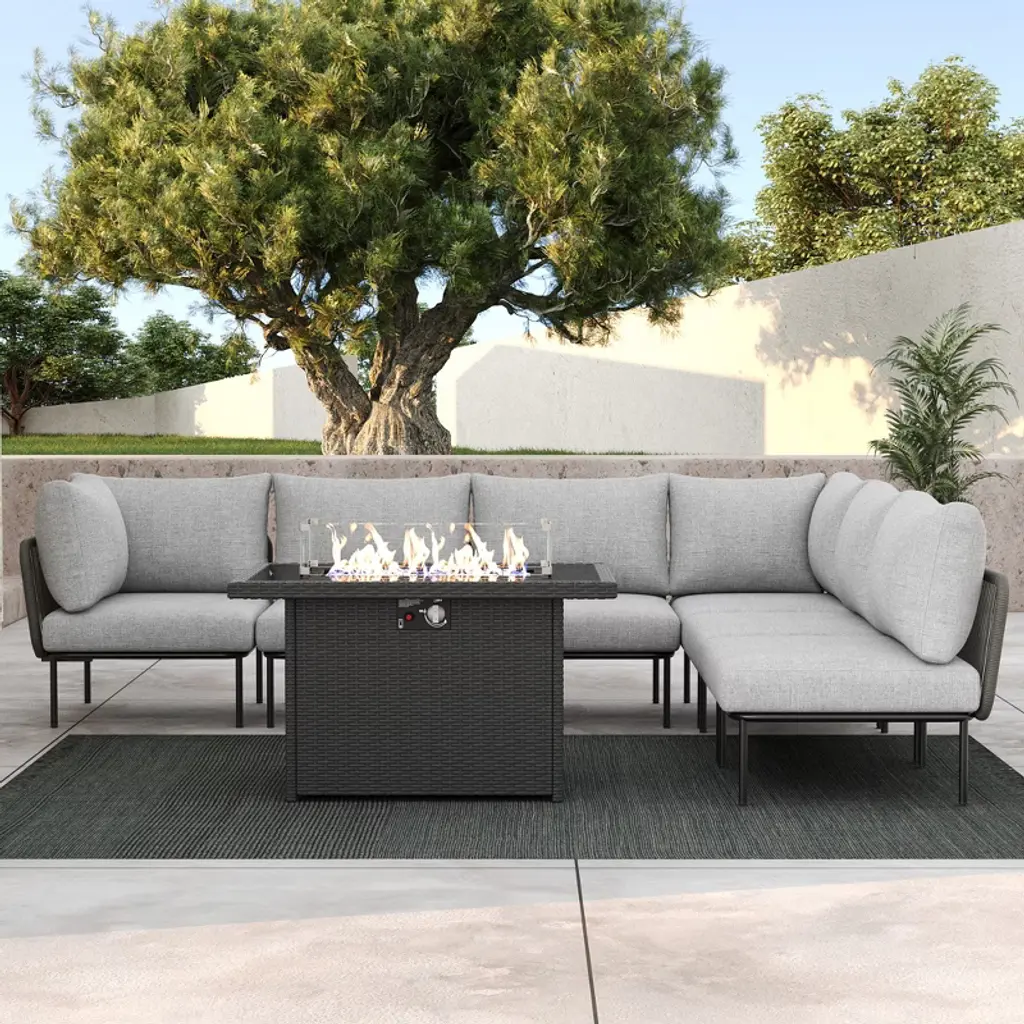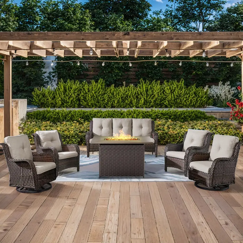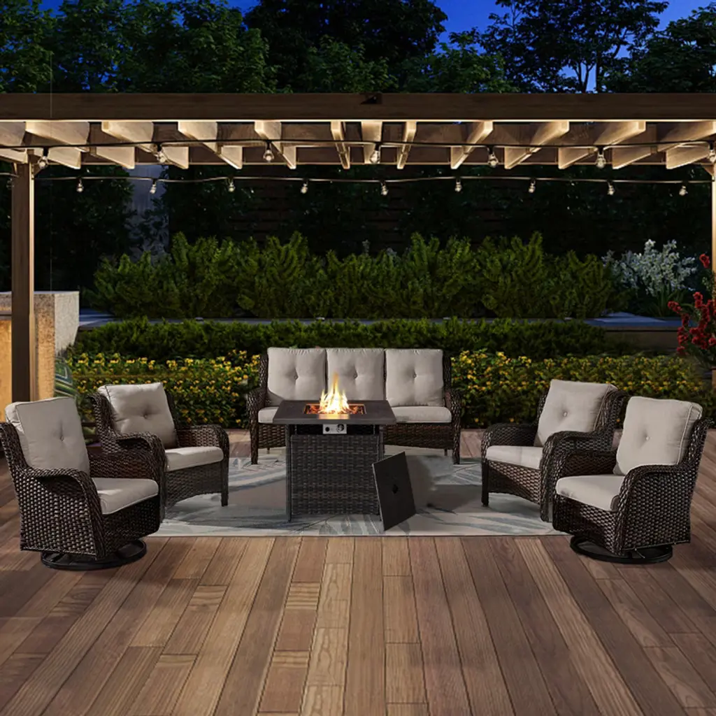 Courtyard Casual Santa Fe 5 Pc Rectangle Fire Pit Set With Wicker Spring Chairs Includes One Rectangle Fire Pit And Four Wicker Spring Chairs