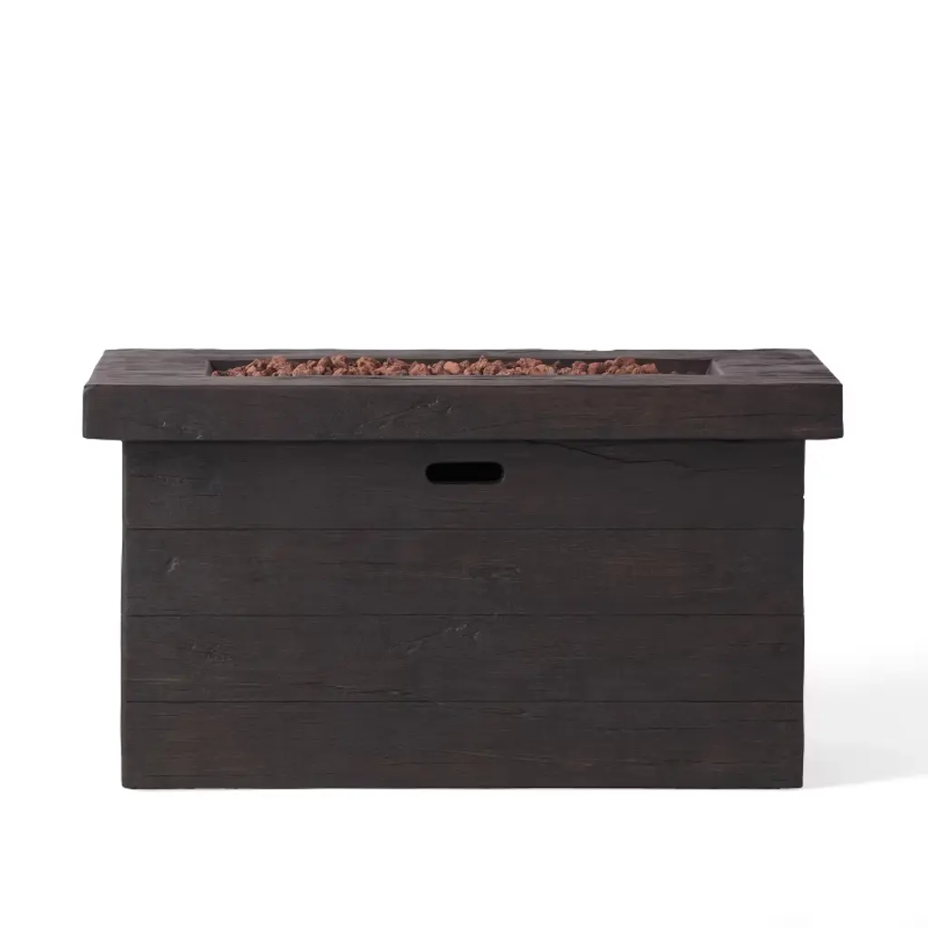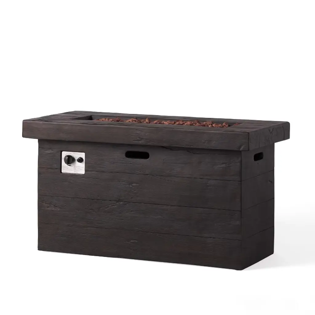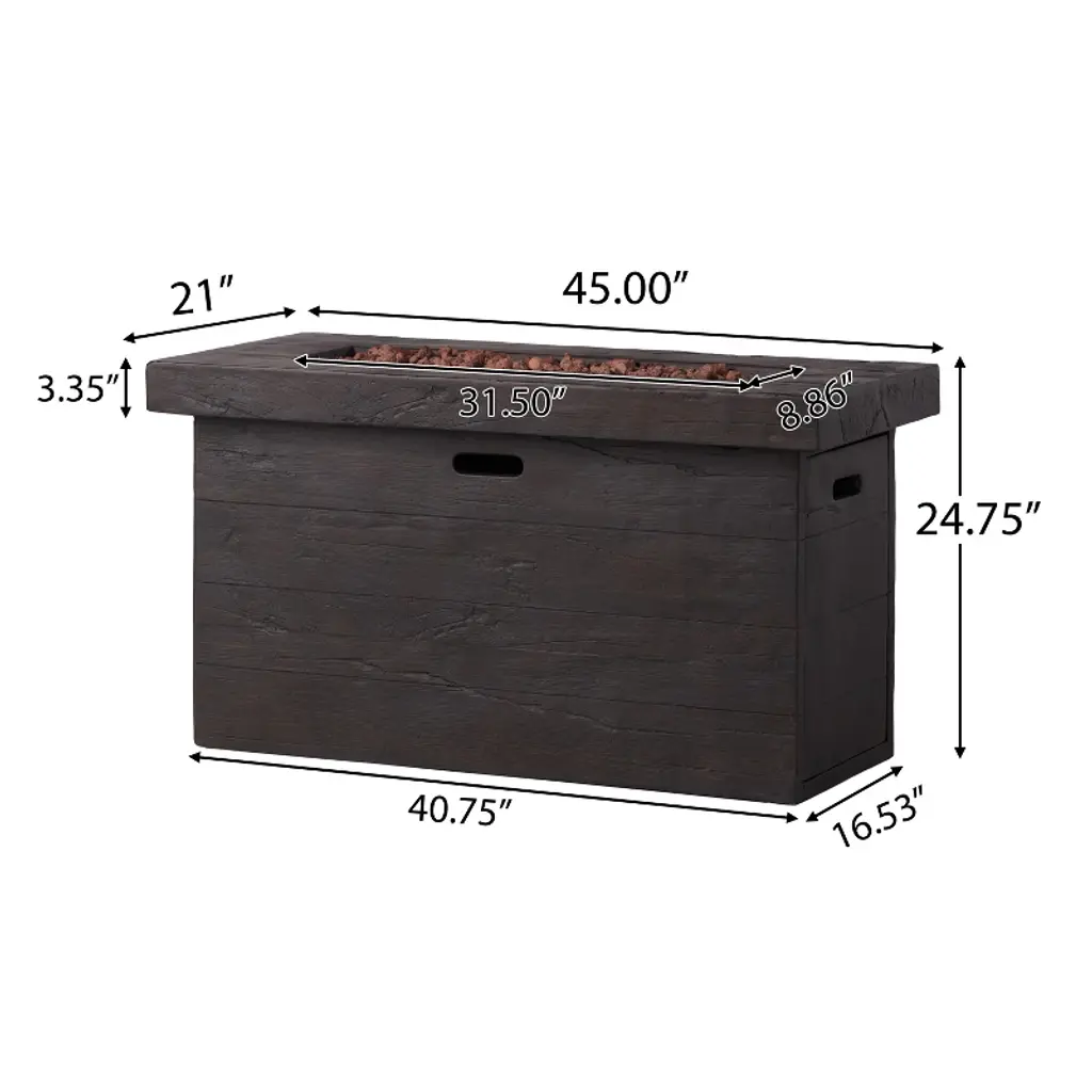 Enhance your patio or backyard with this 45-inch rectangular fire pit, offering 50,000 BTU of warmth. Crafted from lightweight MGO concrete with a sturdy internal frame, it features a built-in propane tank compartment and hand-crafted details for a stylish and practical outdoor centerpiece.