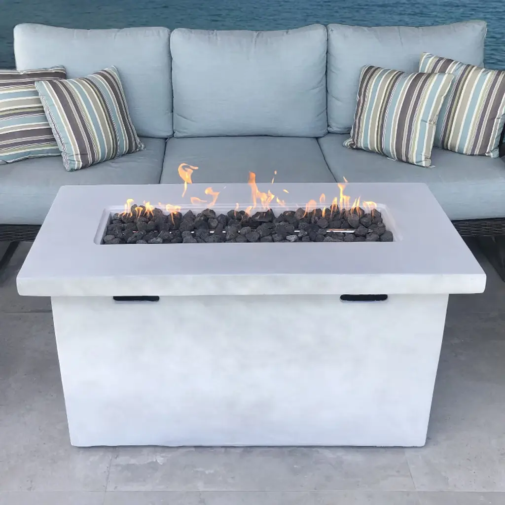 Fiber Reinforced Concrete Propane Gas Fire Pit Table, Durable Outdoor Heating Solution With Stainless Steel Burn Area