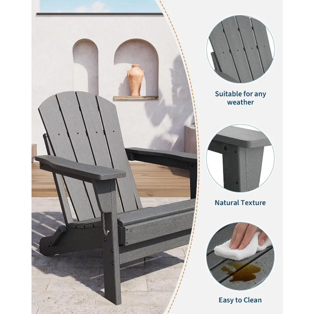 Folding Adirondack Chair Set Of 2, Hdpe All Weather Outdoor Fire Pit Chairs With Wooden Texture For Lawn Deck Backyard Patio Porch Garden, Grey