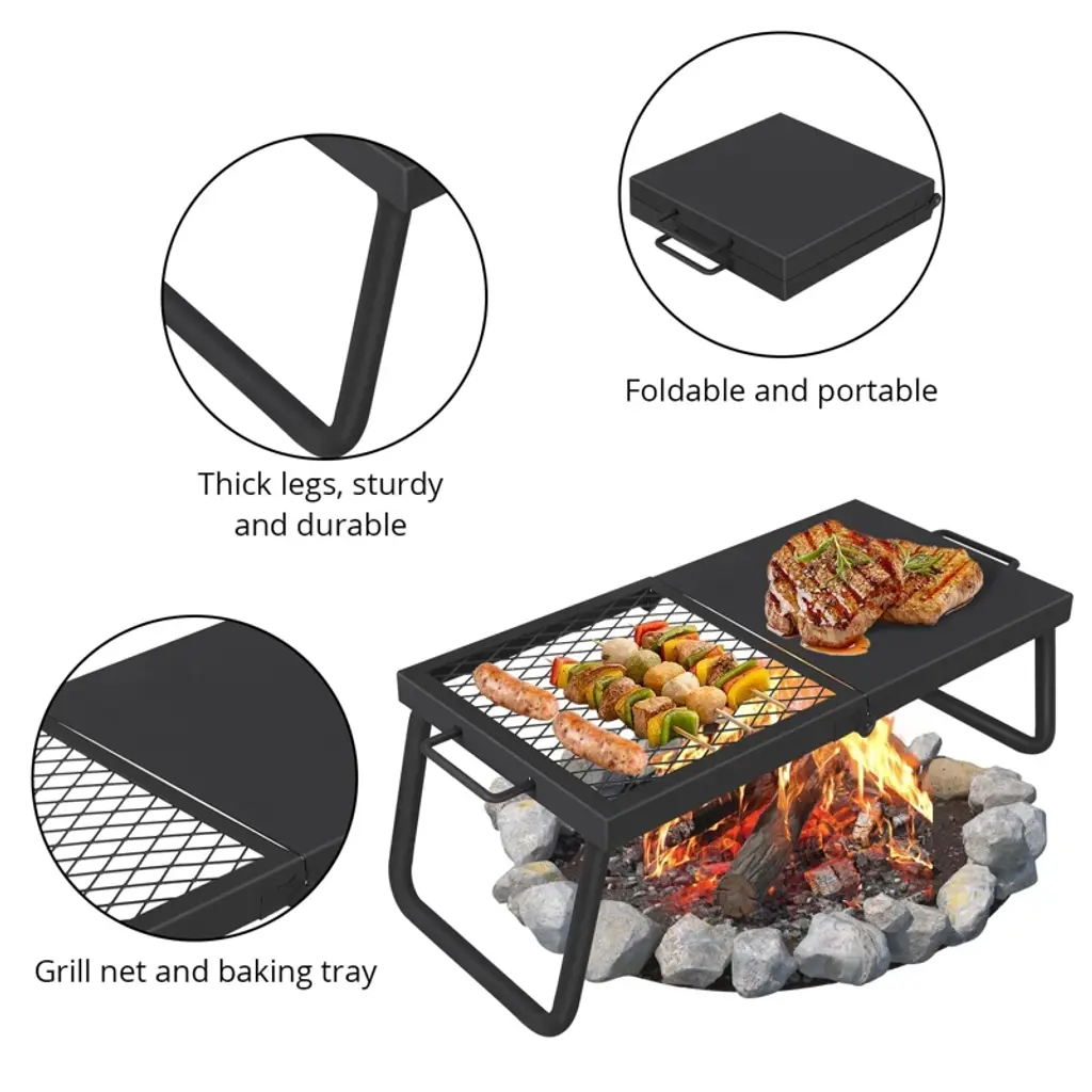 Folding Campfire Grill 22.4"×11.2"heavy Duty Steel Mesh Grate, Portable Camping Grates Over Fire Pit, Grilling Rack For Outdoor Open Flame Cooking