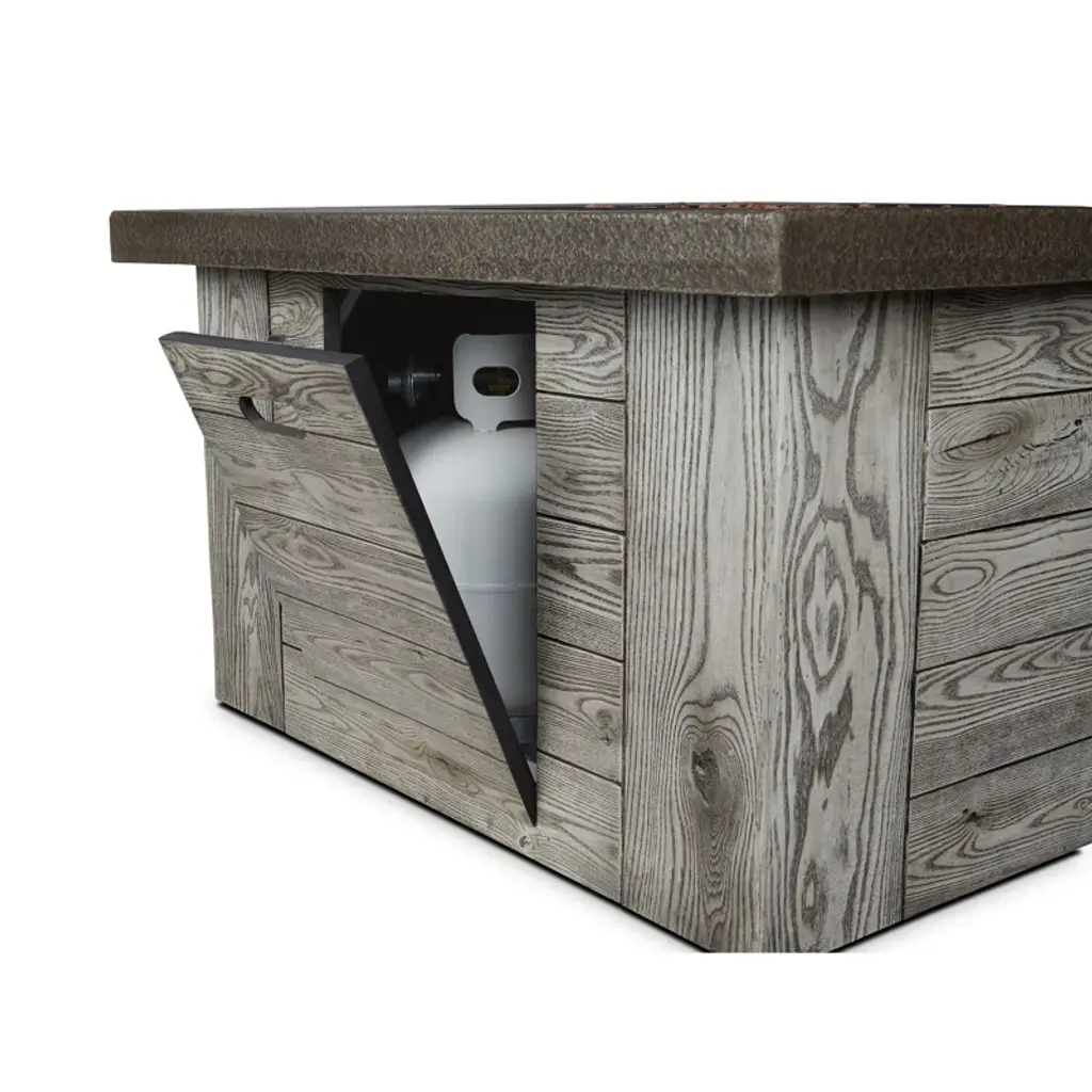 Warm and welcoming, the Forest Ridge Concrete Propane Fire Pit Table will make a stunning addition to your outdoor space. Made from fiber-cast concrete this fire table produces 50,000 BTUs of heat and uses a standard 20lb propane tank.
