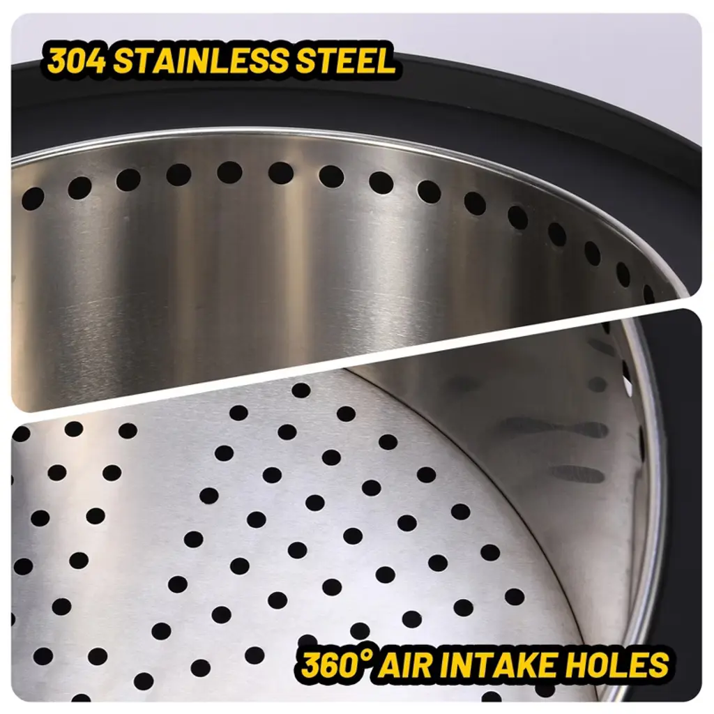Garvee 26 Inch Smokeless Fire Pit, Outdoor Firepit With Removable Ash Pan, Bamboo Lid, Weather Resistant Cover For Outside, Patio, Capming, Black