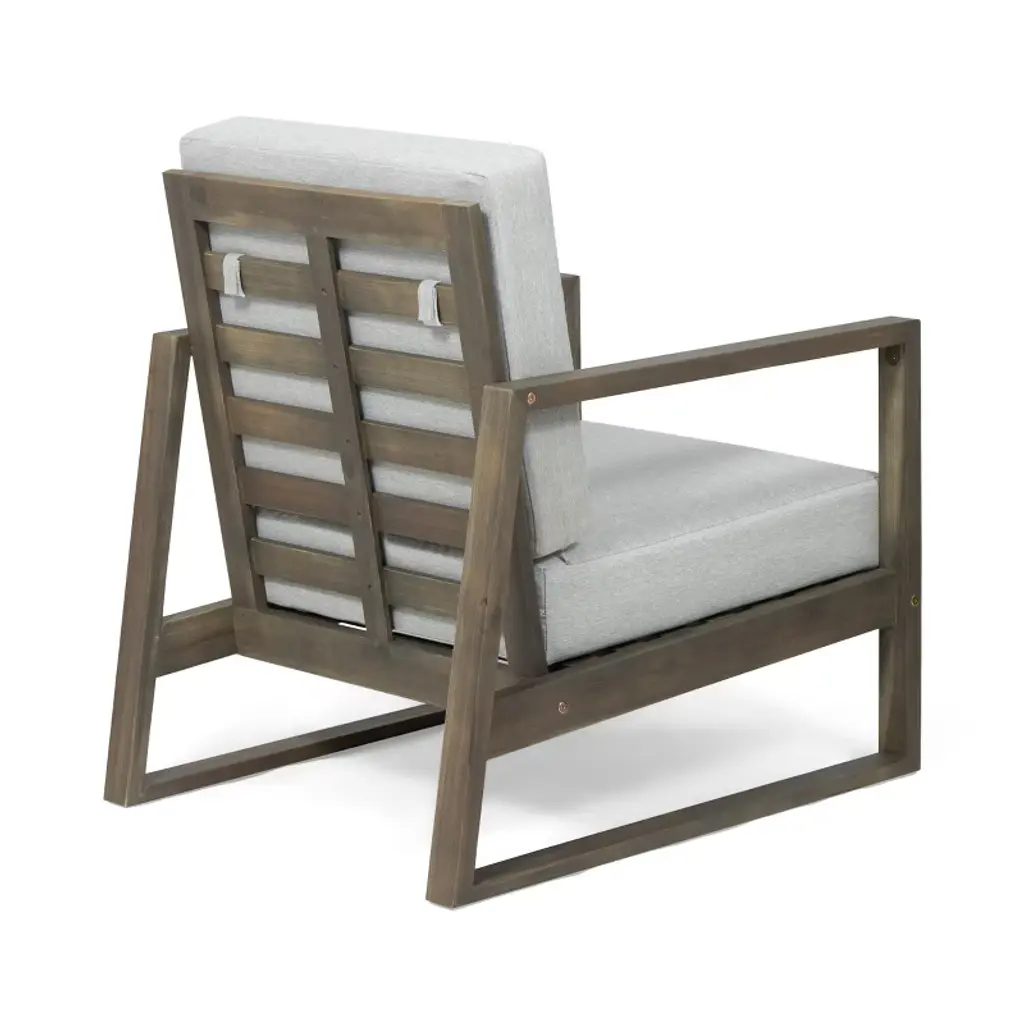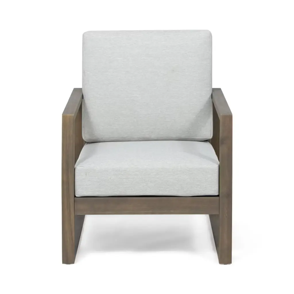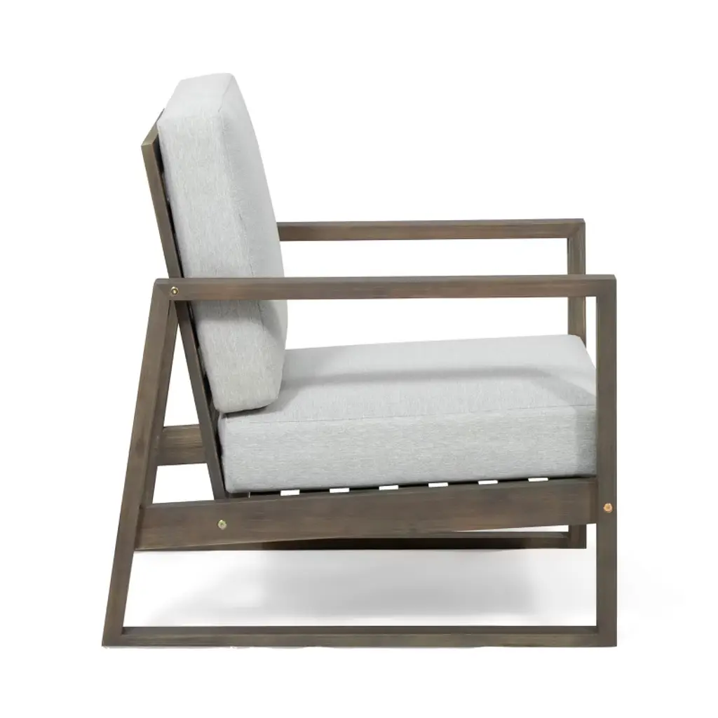 Gdfstudio Lafayette Outdoor Acacia Wood 5 Piece Club Chair And Fire Pit Set With Cushions, Gray/dark Gray