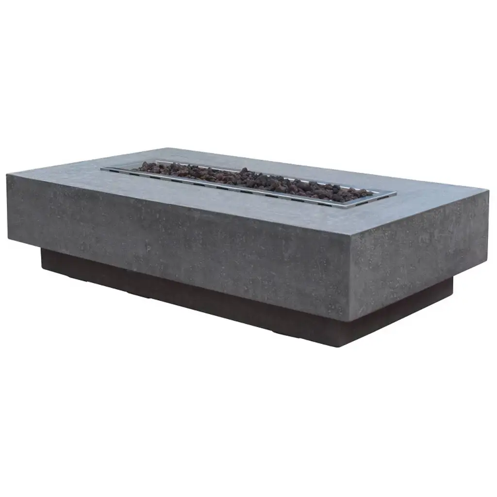 Hampton 56" Natural Gas Fire Pit Outdoor Backyard Patio Heater - Elementi: Rectangle Concrete Fire Table, Weather-resistant