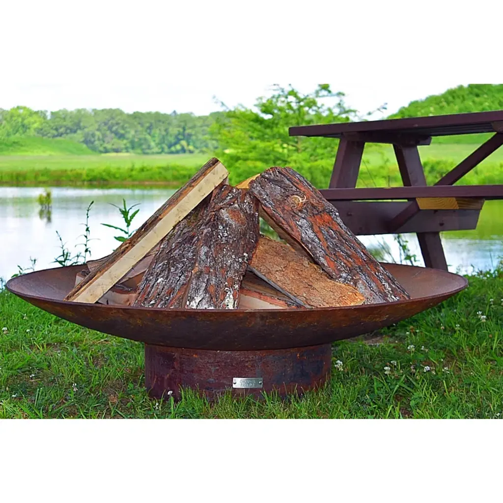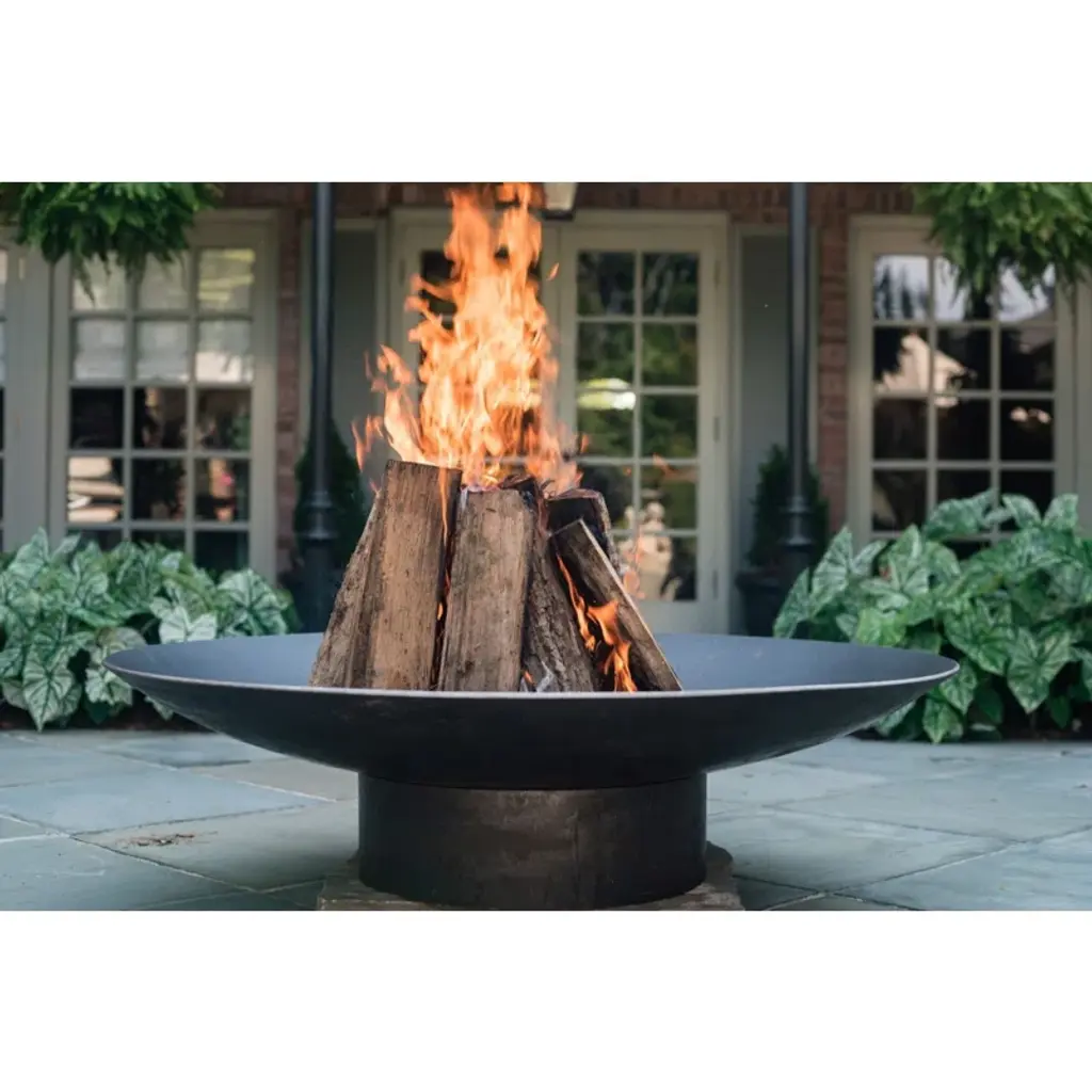 The concave steel wood burning fire pit is designed with a distinctively curved construction that combines modernism and casual elegance with a clean, streamlined, elegantly simple silhouette creating unparalleled beauty in any outdoor destination. 17 Stories manufactures and utilizes industrial-strength tank heads for the bowls used in their fire pits. Tank heads are the end caps on cylindrically shaped pressure vessels. They generally comply with ASME standards because of the high pressures they must withstand for use with gas storage tanks and reactors.
