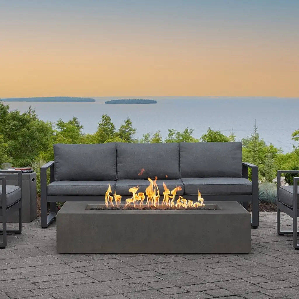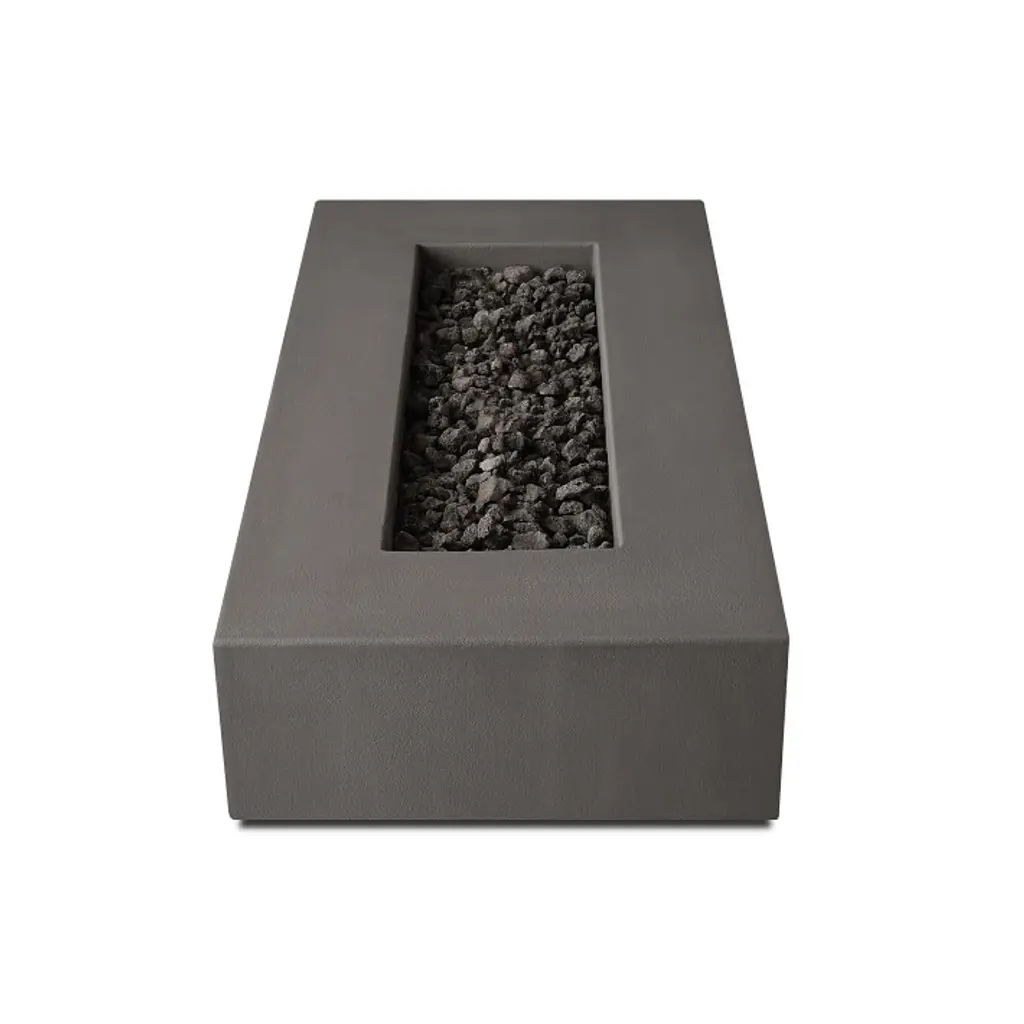 Masterfully handcrafted from glass fiber-reinforced concrete (GFRC), this handsome fire table features a modern design that conceals the inner workings so all you see are rich, inviting flames. The hand-applied rustic finish is sealed to weather the elements in style.