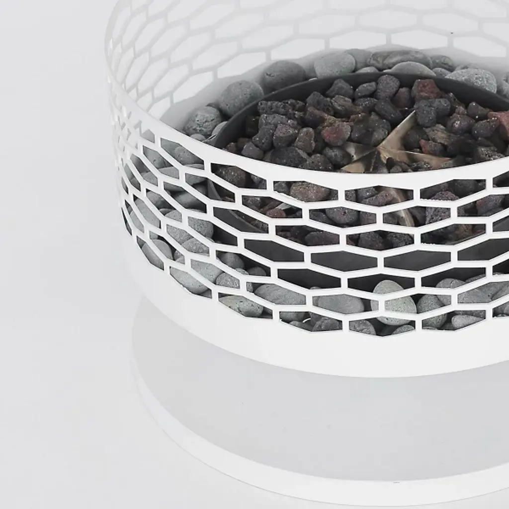 The Hex Solfire Outdoor Fire Pit from Modfire lives up to its name. A gorgeous frame of stainless steel is artfully handcrafted and carved to reveal hexagonal patterning throughout its surface. This profile creates a mesmerizing aura as the fire dances from within the drum-shaped frame. This outdoor fireplace works in tandem with separately sold fiberglass or smooth river rocks. Fueled by propane, Hex’s burn time lasts up to 8 hours.