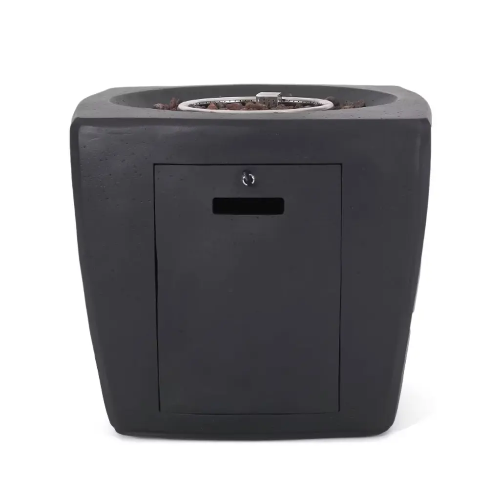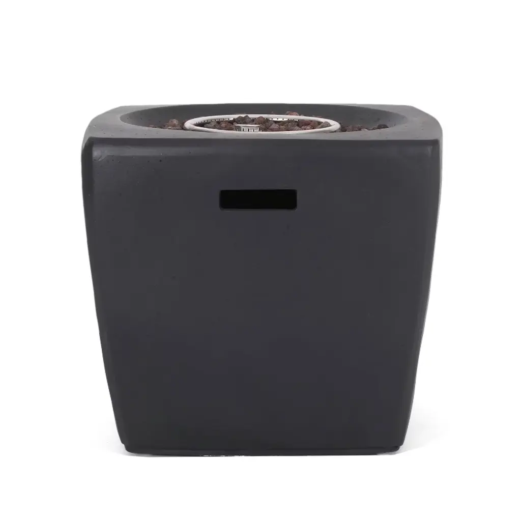 Enjoy cool outdoor nights with a centerpiece that makes your summers feel endless. With a rounded square structure of lightweight concrete and a sleek dark gray finish, our 40,000 BTU fire pit not only offers an incredible upgrade in style but is also perfect for parties due to its easy seating arrangement and built-in tank holder. From intimate conversations around a cozy fire to stargazing on cool summer nights, our wonderful fire pit will have no trouble gathering everyone together for hours of quality time.LIGHTWEIGHT CONCRETE: This fire pit is constructed of lightweight concrete and features a sleek dark gray finish. This provides a highly durable structure that can hold a substantial amount of weight.40,000 BTU: Featuring a rounded square shape and a BTU of 40,000, our fire pit allows easy seating arrangement for you and your guests, providing light and warmth all around during those chilly evenings.TANK SPACE INCLUDED: This fire pit comes with a built-in space for your propane gas tank. You can enjoy your fire pit without having to worry about running a hose to the tank or tripping over the exposed tank.DIMENSIONS: Choose an accessory that is the perfect size for you and your furniture. This fire pit is 27.00” W x 27.00” D x 24.00” H. You will love how much your space can transform with the simple addition of this charming fire pit.NO ASSEMBLY REQUIRED: No assembly is required for this fire pit. Simply place the lava rocks in the pit without covering the burner, and then plug in your standard size propane tank and enjoy your fire pit.
