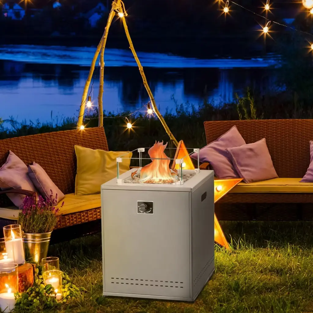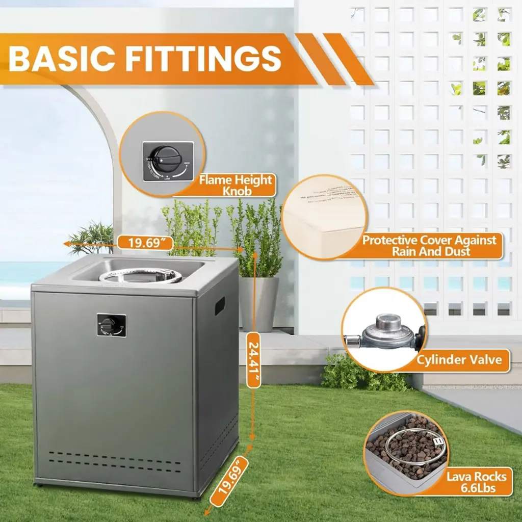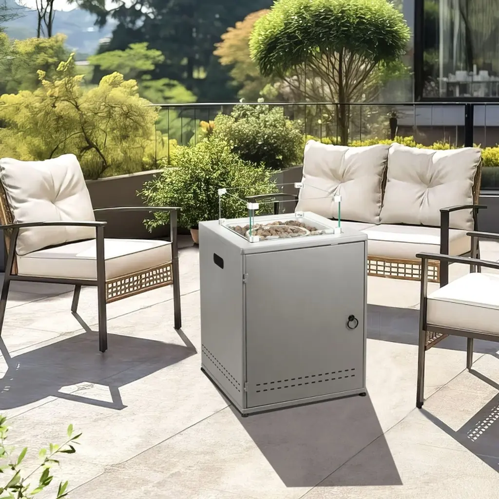 Kismile Propane Fire Pit, 22 Inch Square Outdoor Fire Pit 40000 Btu Heat Output (Grey)