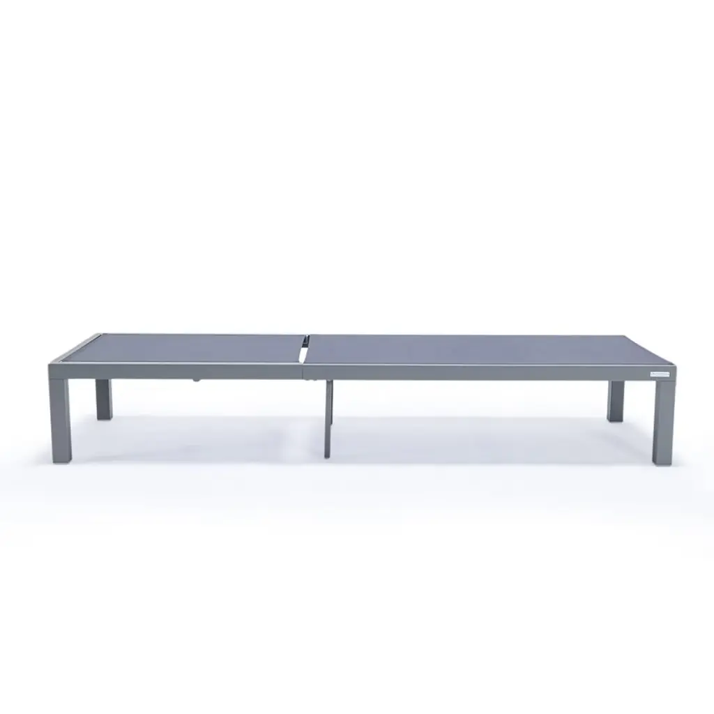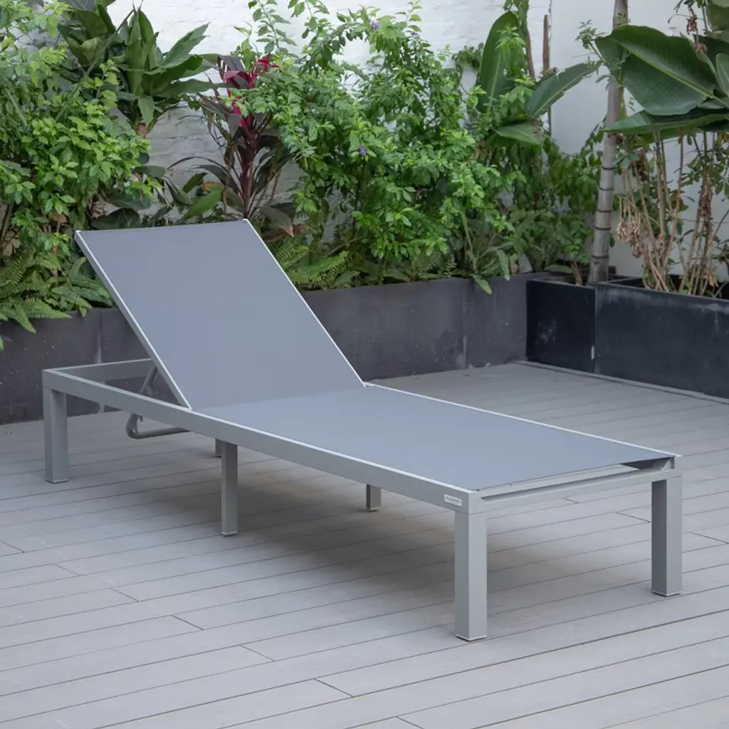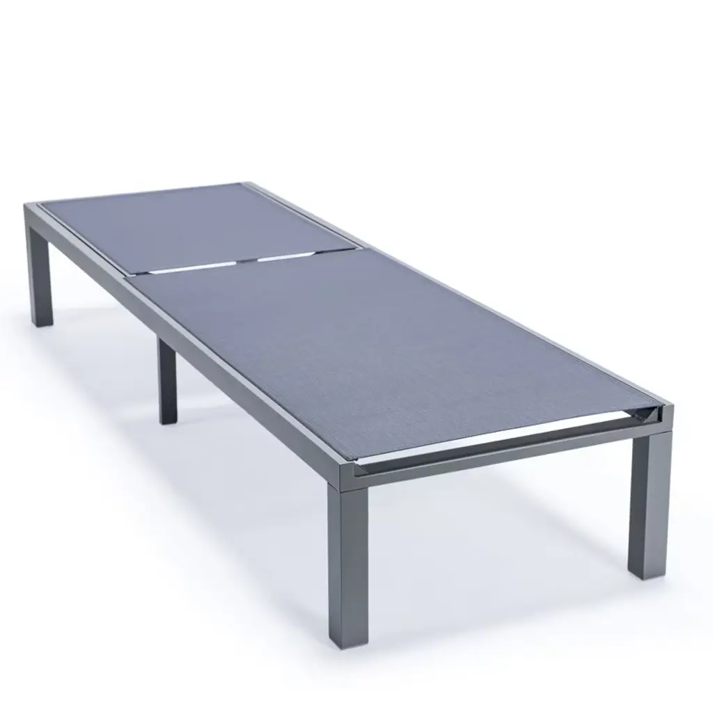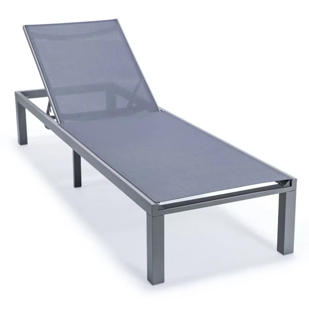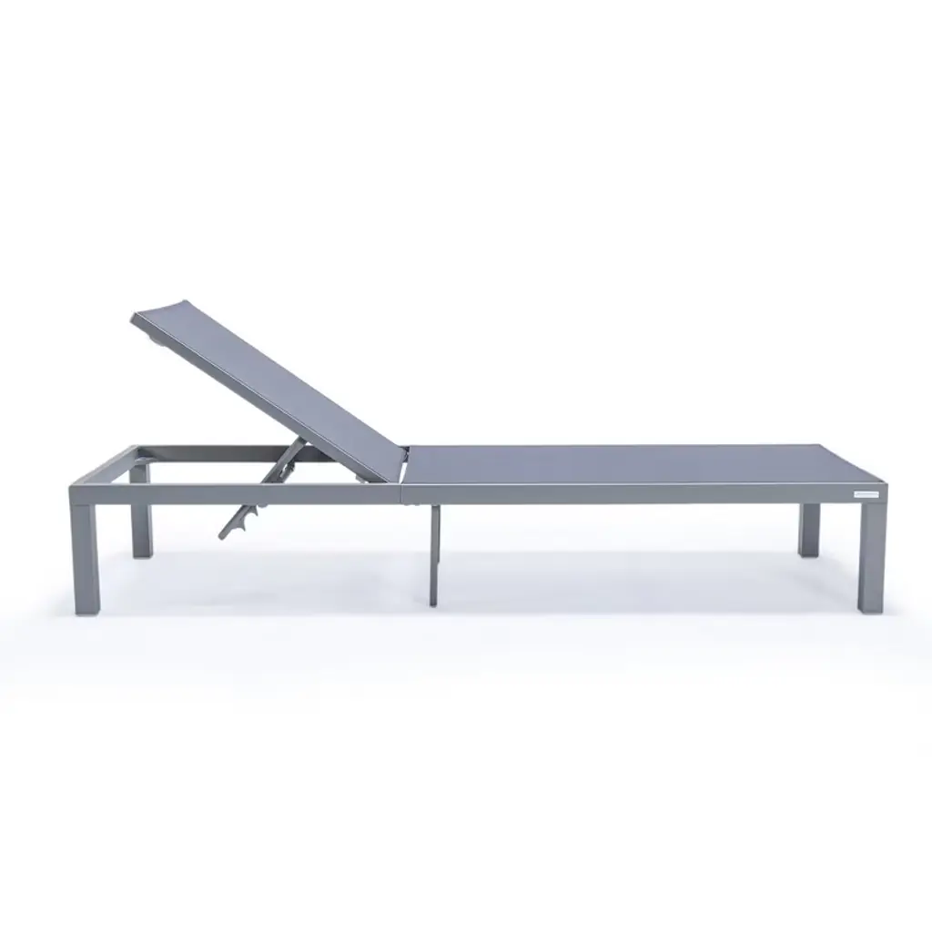 Leisuremod Marlin Modern Outdoor Patio Chaise Lounge Chair In Grey Aluminum Frame With Square Fire Pit Side Table In Dark Grey