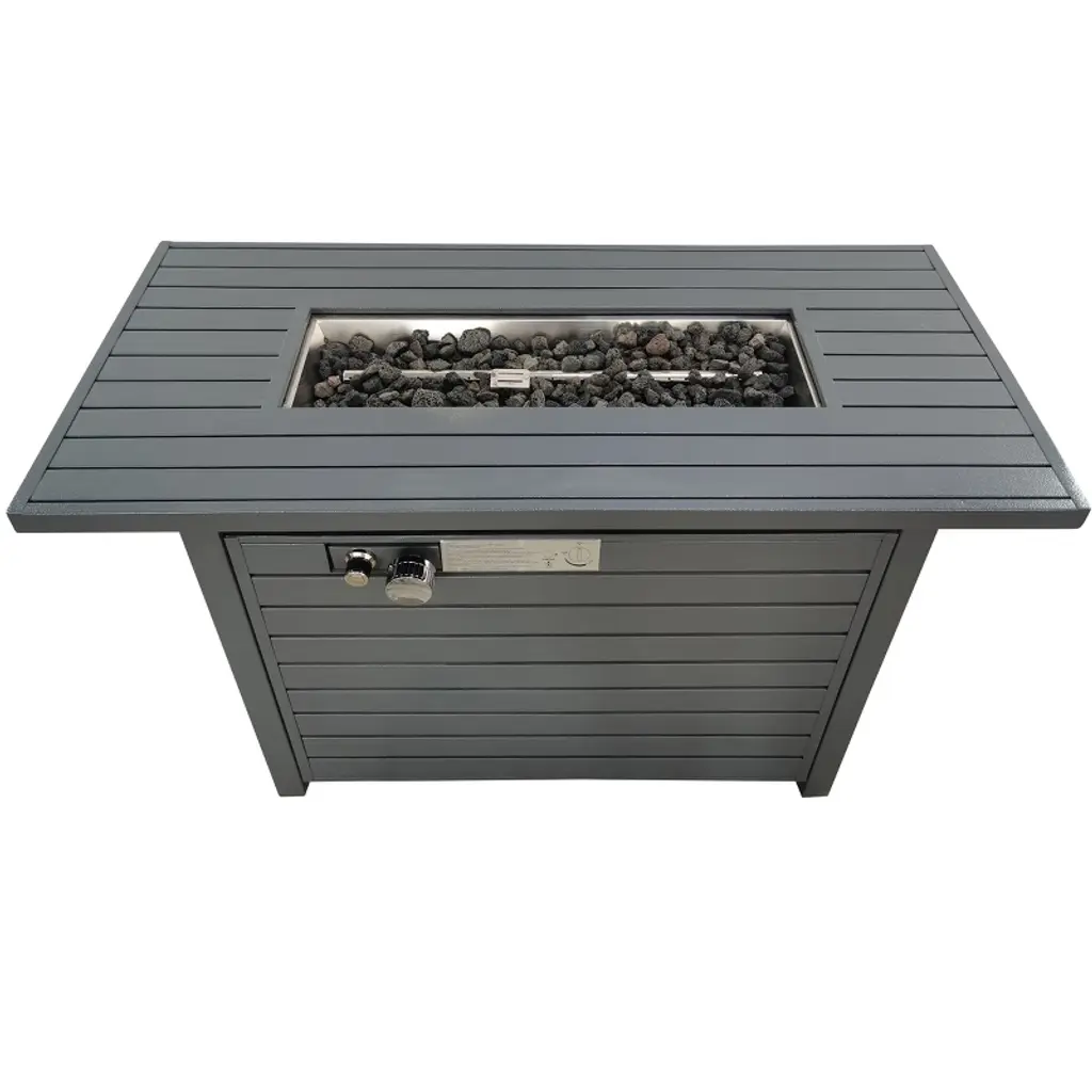 43.7-inch square outdoor heater fiberglass and iron Suitable for courtyard and outdoor Comes with a tabletop cover. Knock-down assembly saves space. CSA certified. white charcoal grain. 50000BTUWhen the heating stove is not in use, the tabletop cover can be put on and used as a coffee table.The product is high temperature resistant, does not rust, has a long service life and is made of environmentally friendly materials.The product has a realistic shape, excellent hand feel, is not easily broken and is easy to maintain.The core part of our heating stove is made of 304 stainless steel, which will not rust and has a better effect.