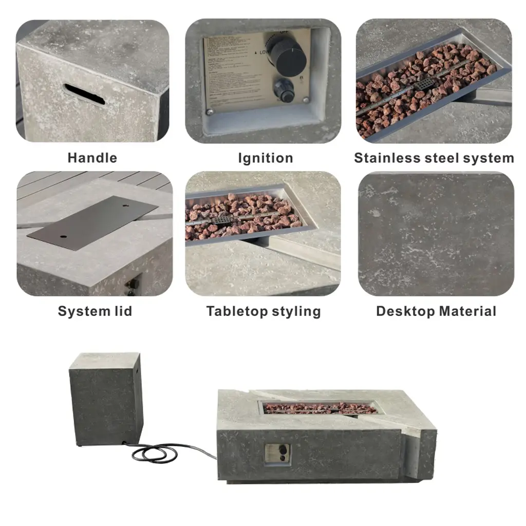 Introducing the Concrete Outdoor Gas Fire Pit Table, a perfect blend of contemporary design and rugged durability. This fire pit table not only enhances your outdoor space with warmth and ambiance but also provides a sophisticated focal point for your patio or garden. Ideal for gatherings and outdoor entertainment, it promises to create cozy and memorable moments with family and friends.