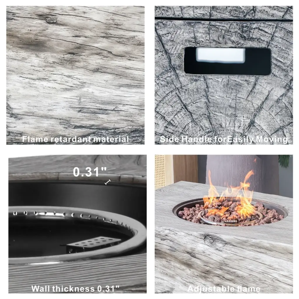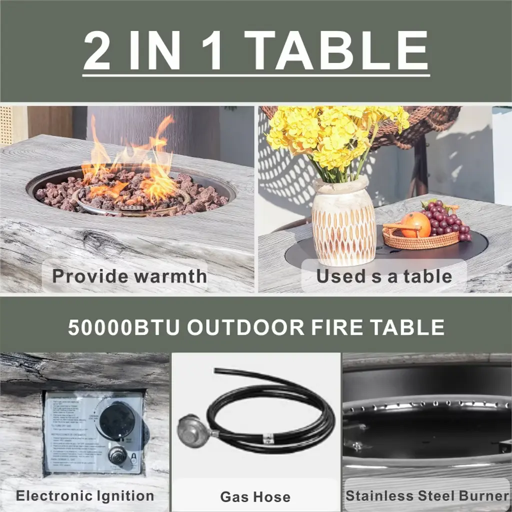 Add warmth and style to your outdoor living space with this 23.8'' H x 40'' W magnesium oxide propane fire pit table. Featuring a sleek design and durable construction, it provides the perfect atmosphere for cozy evenings or casual gatherings. Whether you're looking to enjoy a quiet night under the stars or host a lively outdoor event, this fire pit table offers both functionality and elegance. The included lid protects the fire pit when not in use, ensuring it stays in great condition for years to come.