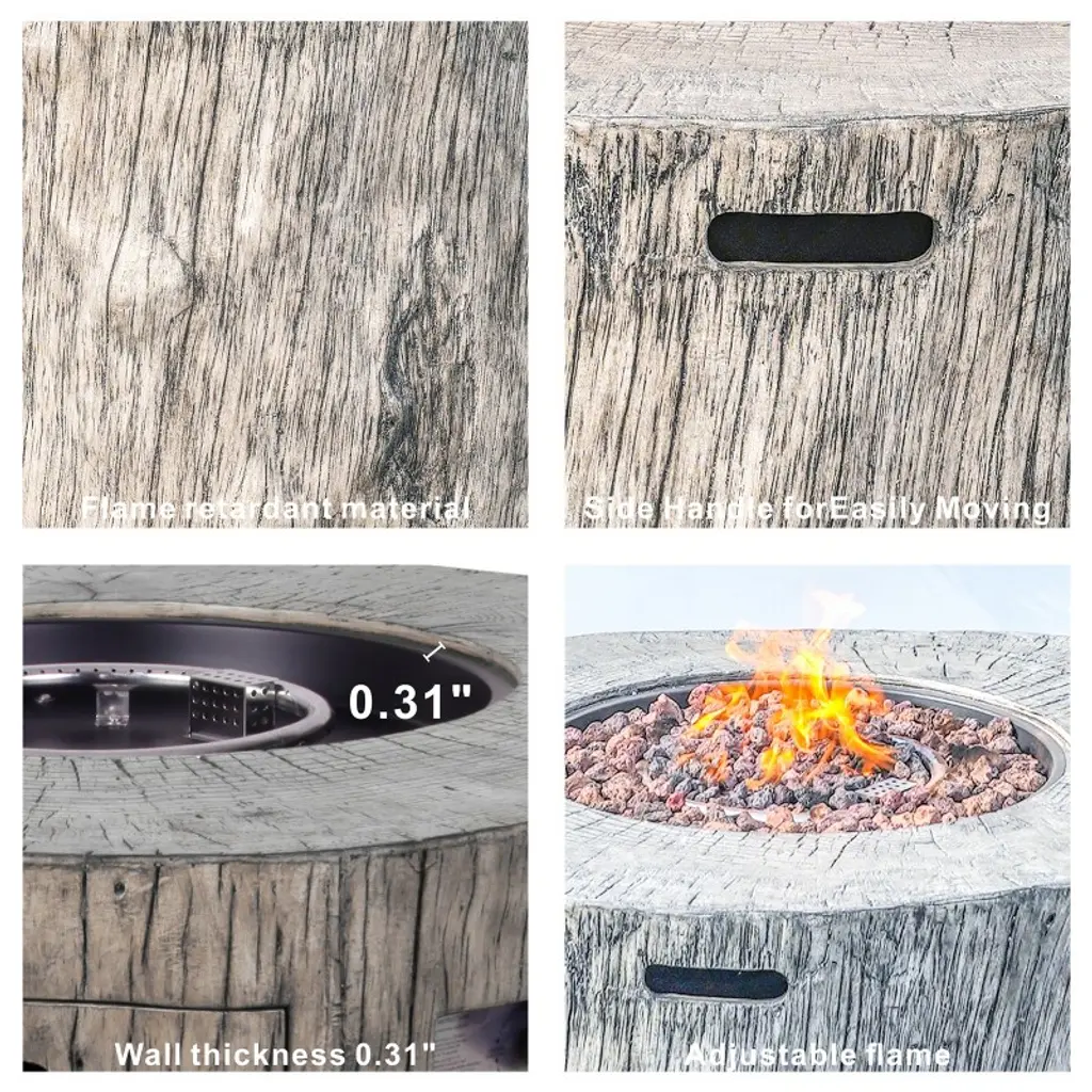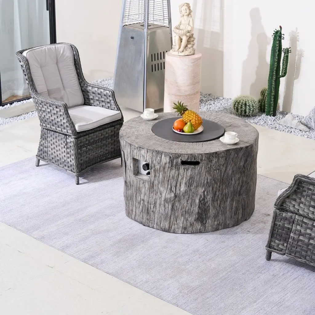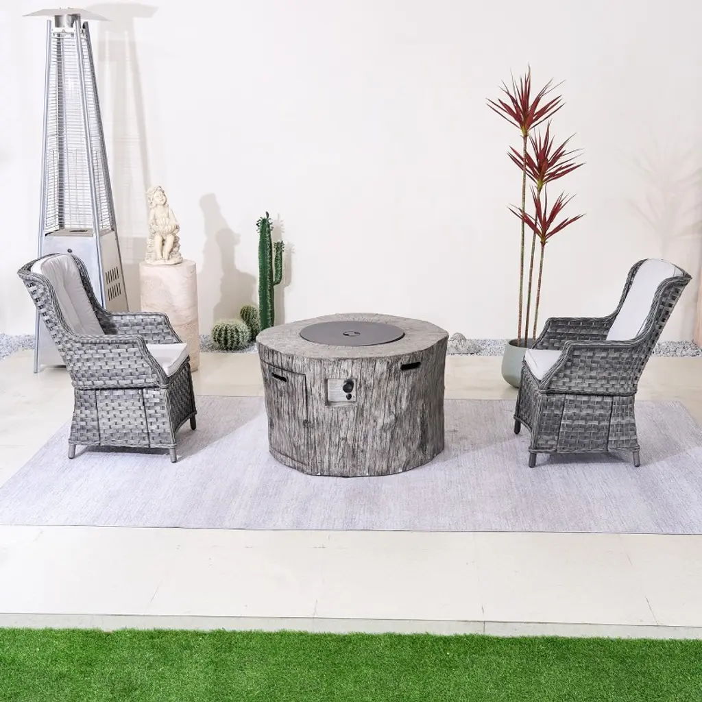 Moda Furnishings 3-piece Gray Wicker Aluminum Outdoor Fire Pit Set With Gray Cushions-gray Fire Pit Table