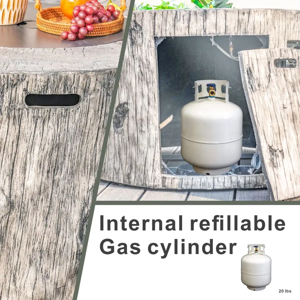 Transform your patio into a stylish and relaxing retreat with this elegant 3-piece outdoor fire pit set. Featuring two deep-seating armchairs crafted with durable wicker over a rust-resistant aluminum frame, and a rustic wood-look propane fire pit table, this set offers the perfect combination of modern comfort and natural charm. Whether you're hosting guests or enjoying a quiet evening under the stars, this 3-piece fire pit set turns your patio into a year-round retreat.