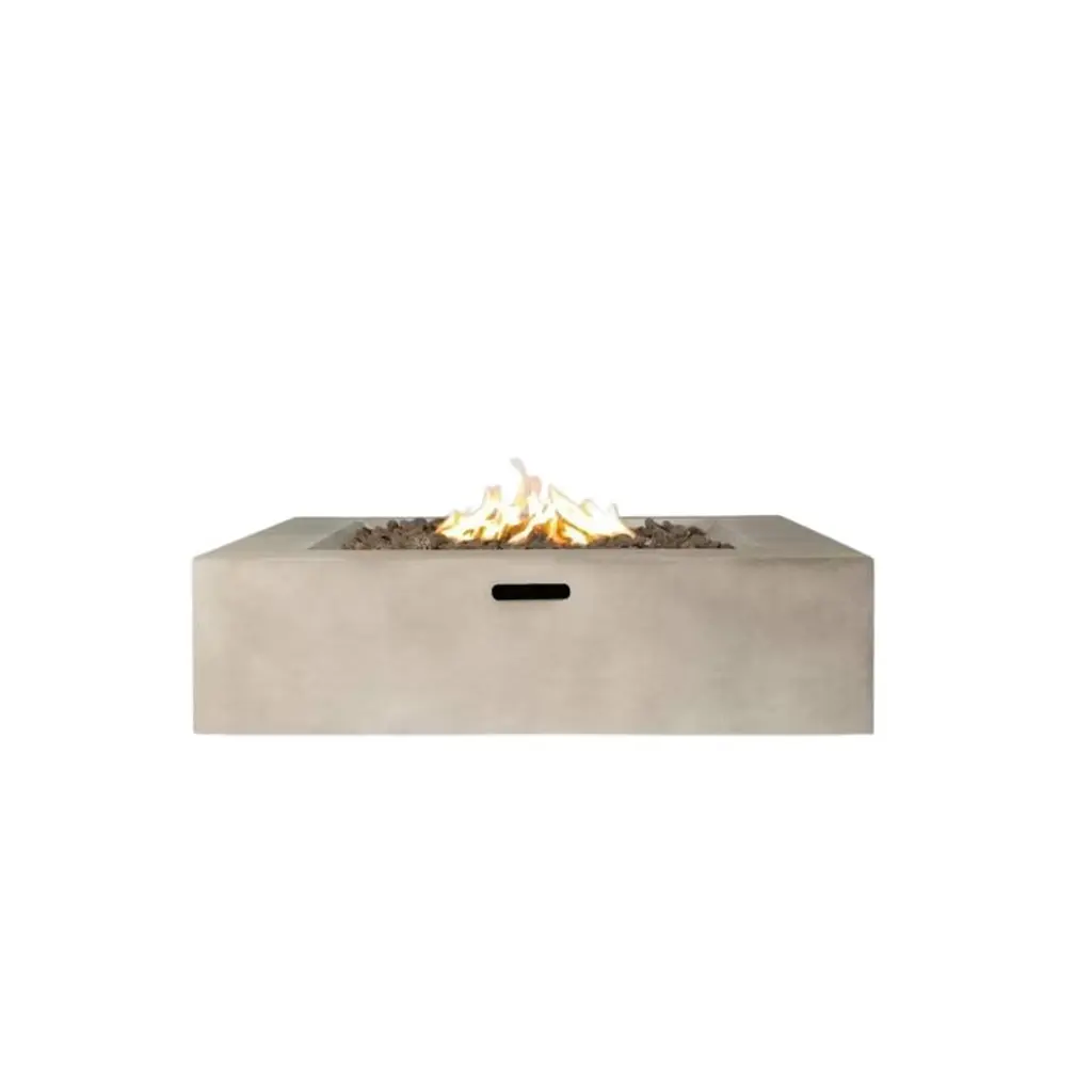 Elevate your outdoor living with this modern concrete fire pit, combining sleek style and dependable warmth. Crafted from reinforced concrete, it features a low-profile rectangular design with clean lines and a sturdy block base for contemporary appeal. The push-button ignition and included lava rocks make setup effortless, while dual fuel capability allows use with propane or natural gas (conversion kit sold separately). Each unit is uniquely handcrafted, offering subtle finish variations that make every fire pit one-of-a-kind. Durable, weather-resistant, and ready to use, it’s the perfect centerpiece for stylish, cozy outdoor gatherings.