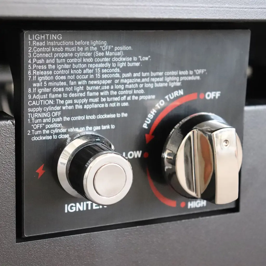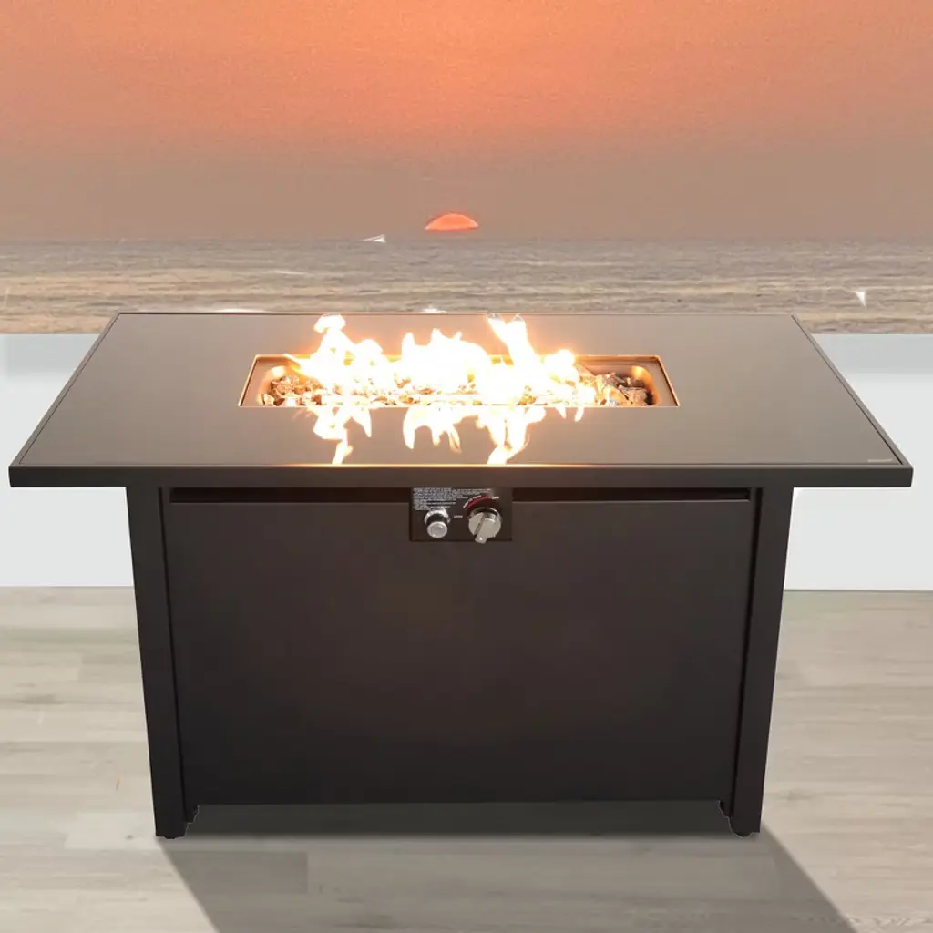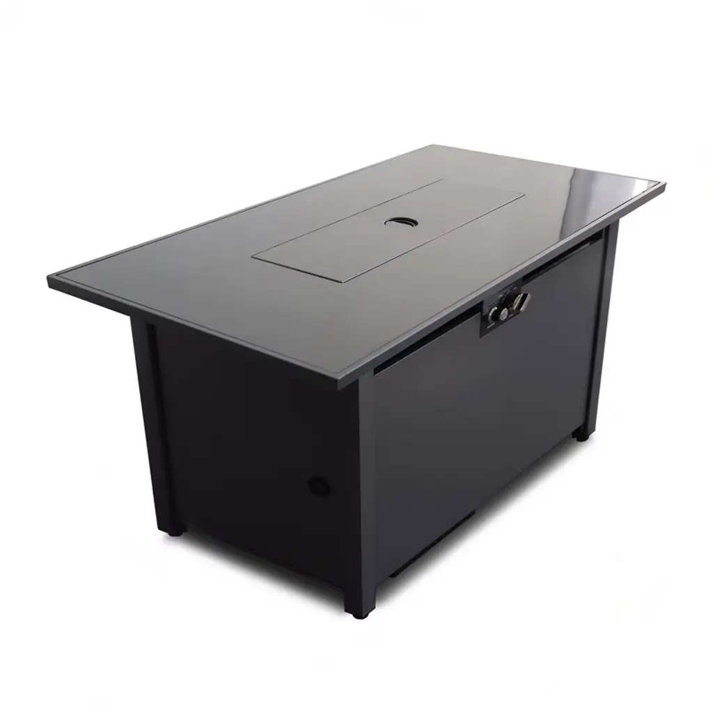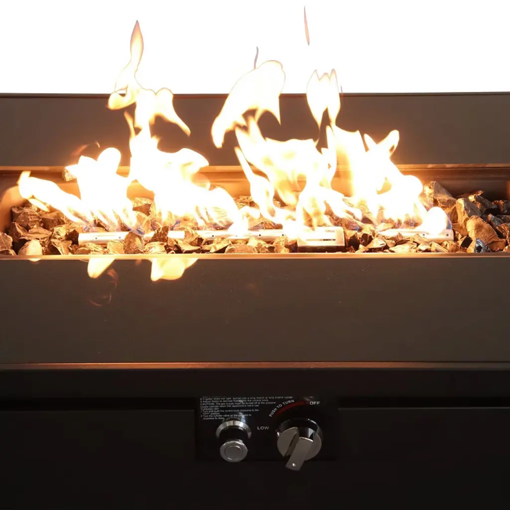 Cozy up your outdoor space with this modern fire pit table, perfect for year-round gatherings. Featuring a rust- and weather-resistant steel base and a sleek stainless steel top, it combines durability with contemporary style. Integrated push-button ignition and included lava rocks make starting and enjoying the fire effortless, while a side-access door conceals the propane tank for a clean, streamlined look. Safe for use on wood decks, this versatile fire pit provides warmth and ambiance with ease. Propane-ready and convertible to natural gas (kit sold separately), it’s a stylish, functional centerpiece for any patio or backyard.