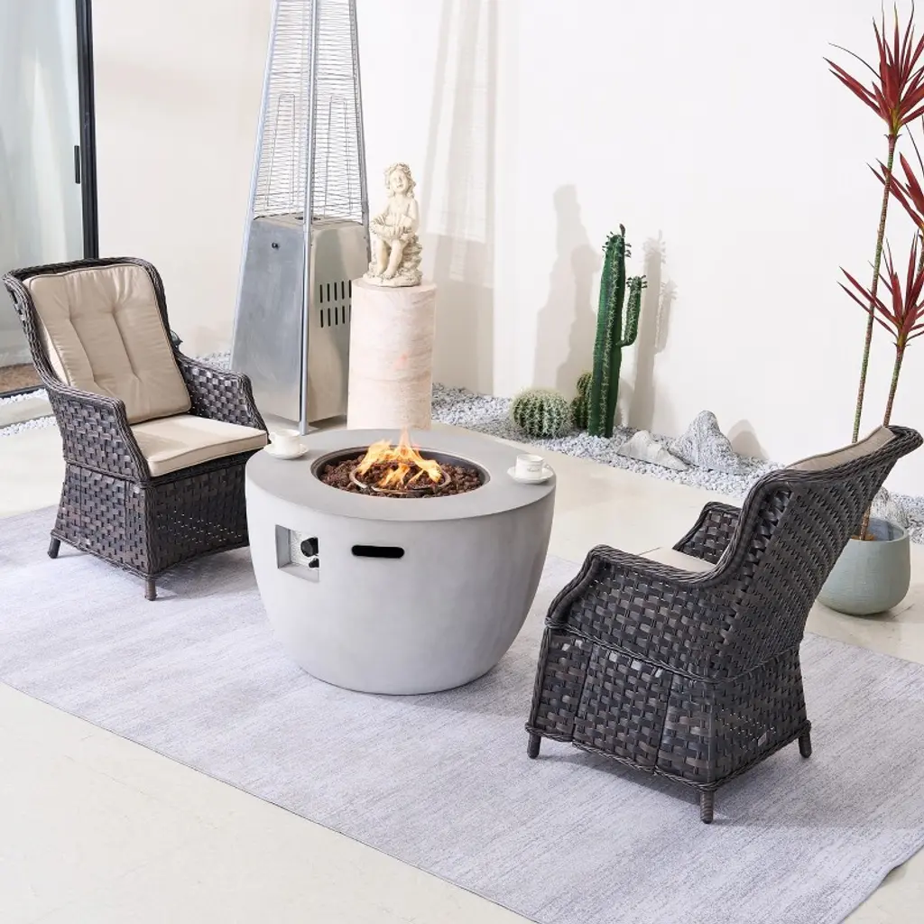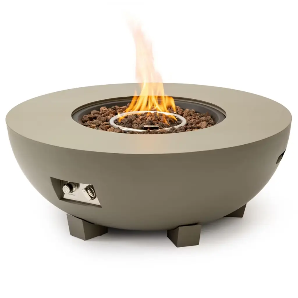 Elevate your outdoor gatherings with this stylish grey, bowl-shaped fire pit. Featuring a safe push-button ignition and adjustable flame control, it delivers effortless warmth and ambiance for cozy evenings. A pre-attached 10-foot commercial-grade propane hose ensures quick, hassle-free setup with a standard 20 lb tank (not included), while the included metal cover converts the fire pit into a functional table when not in use. Crafted for both style and practicality, its modern design complements patios, poolside areas, or balconies. Perfect for entertaining, relaxing, or adding a warm focal point to any outdoor space, this versatile fire pit combines safety, convenience, and contemporary elegance for year-round enjoyment.