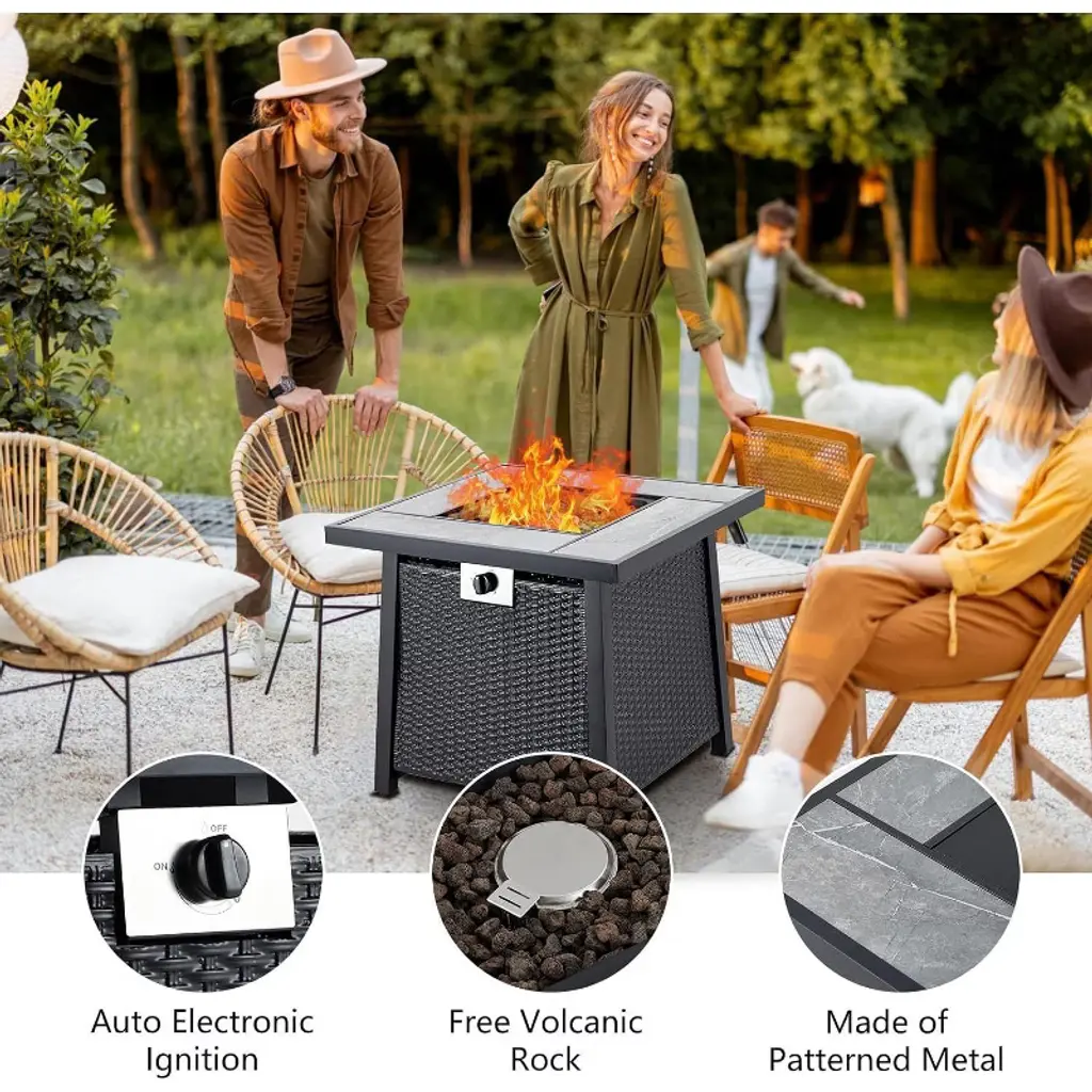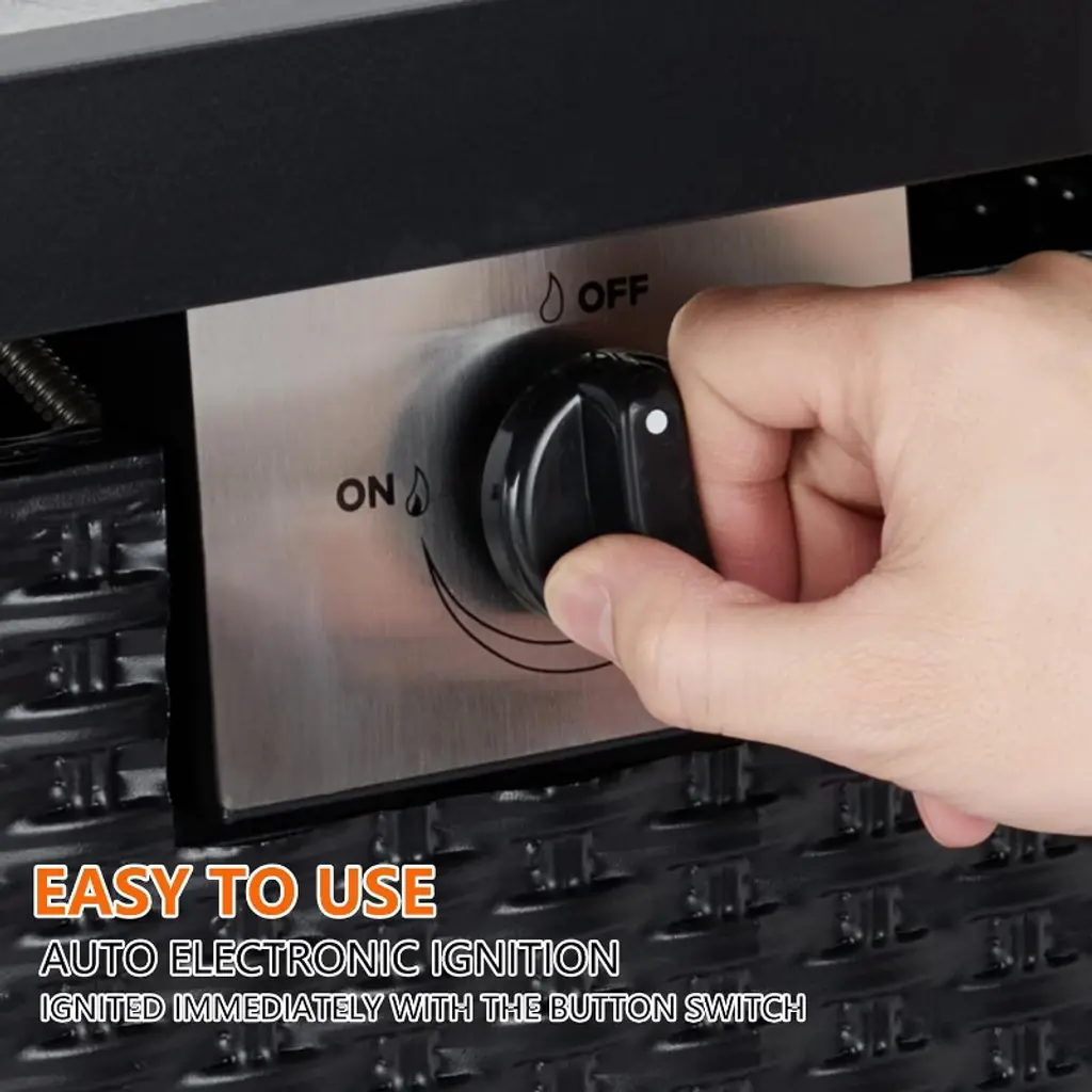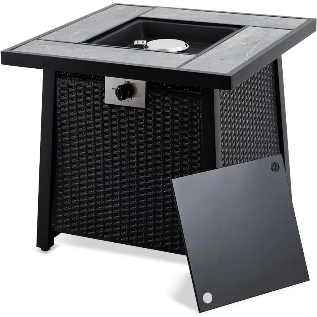 Elevate your outdoor space with the Nasitip 28" Propane Fire Pit Table—a perfect blend of warmth and style! This 50,000BTU fire table features a sturdy steel and iron fence design with CSA certification for safety. The electronic ignition system offers flame control, while the high-temperature paint finish resists cracking and oxidation. Use the included cover to convert it into a chic coffee table when not in use. Includes lava rocks, burner cover, and tools (propane tank sold separately). Ideal for gardens, patios, or balconies—create a cozy ambiance without smoke or ash!