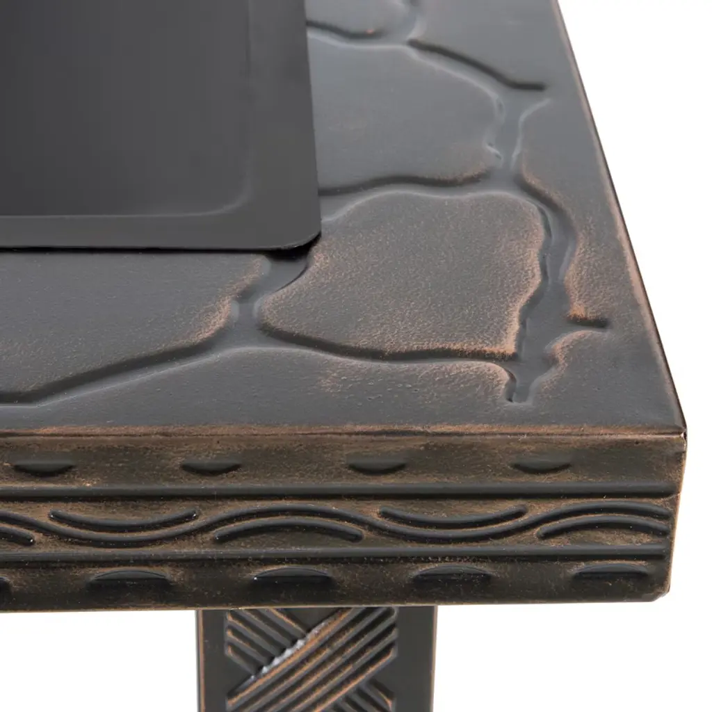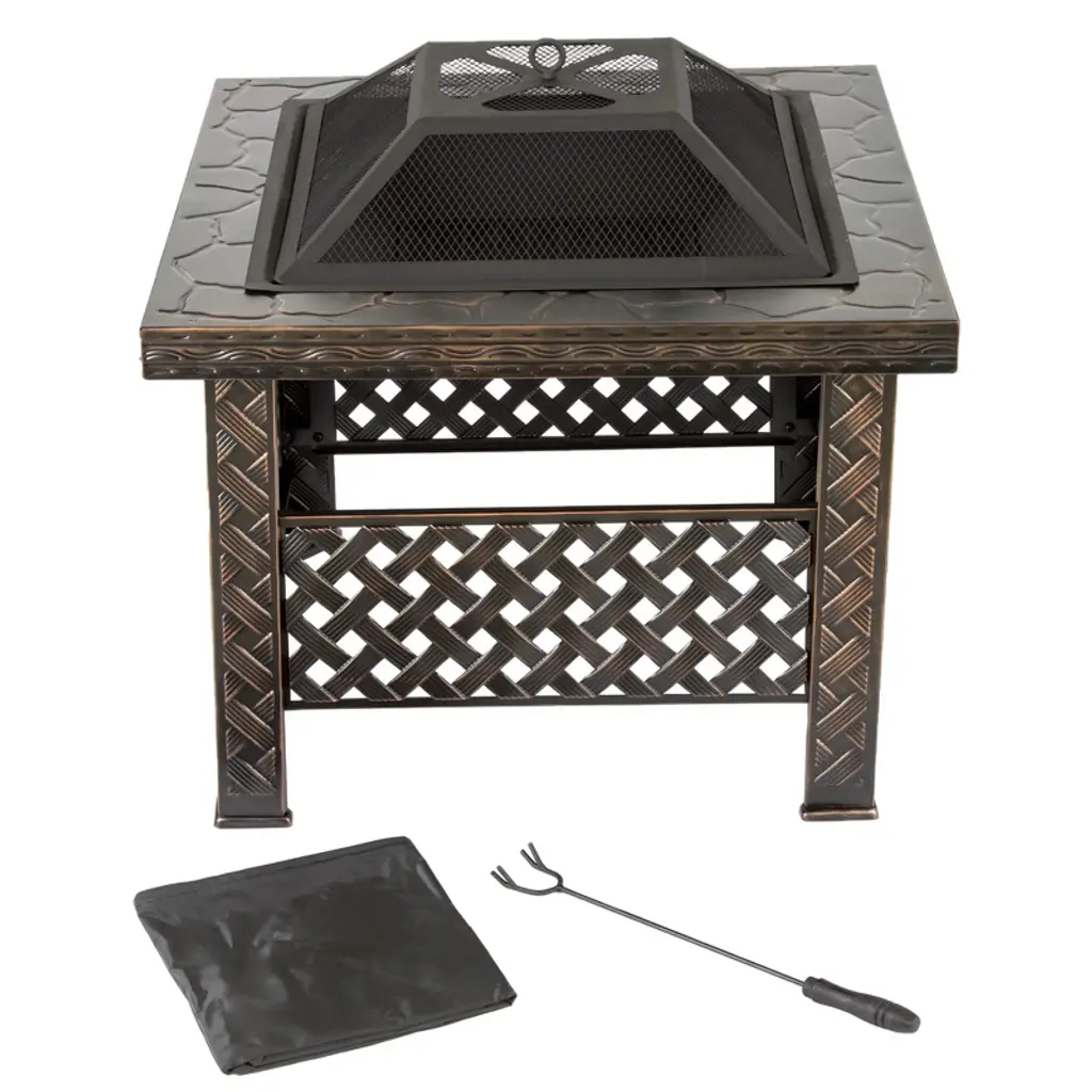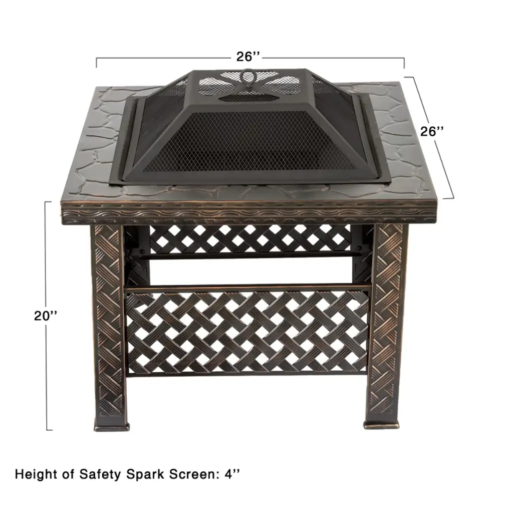 Nature Spring 26" Square Basketweave Wood-burning Fire Pit - Bronze Finish
