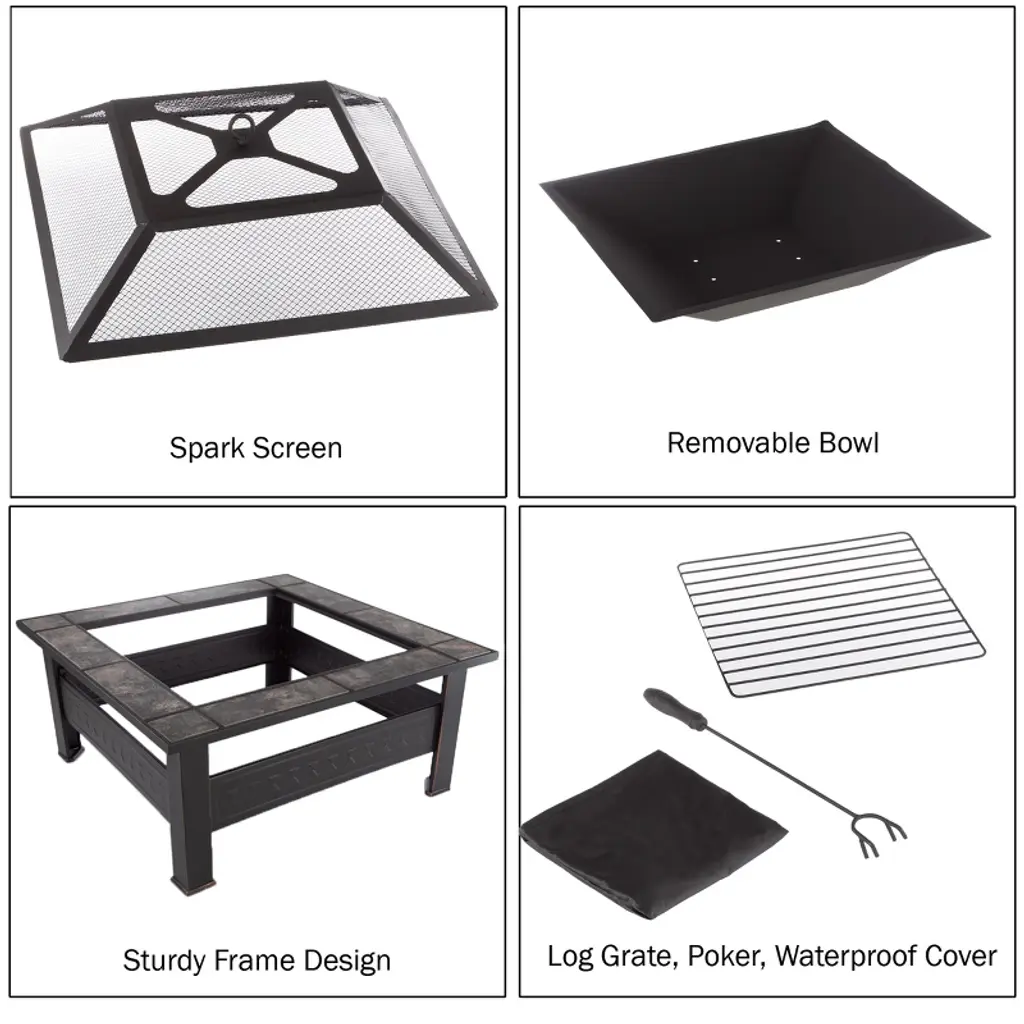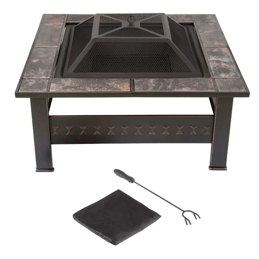 The 32-Inch Firepits for Outside Patio by Nature Spring have a bronze powder-coated finish with a marbled tile edge that is sure to become a focal point of your patio, deck, or campsite. This fire pit table features a removable fire bowl, a log grate that allows ashes to drop down, a handy log poker, a weather-resistant PVC cover, and a matching spark screen so you can safely burn wood in your backyard. These portable and low maintenance fire pits create lasting memories with family and friends while enjoying a warm, ambient atmosphere on a cool summer night or crisp fall evening.