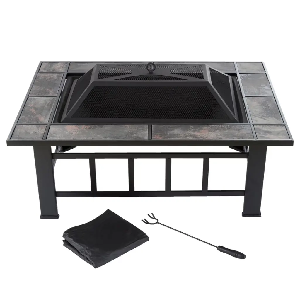 The 37-inch Firepits for Outside Patio by Nature Spring have a simple black finish with a marbled tile edge that is sure to become a focal point of your patio, deck, or campsite. This fire pit table features a removable fire bowl, a log grate that allows ashes to drop down, a handy log poker, a weather-resistant PVC cover, and a matching spark screen so you can safely burn wood in your backyard. These portable and low maintenance fire pits create lasting memories with family and friends while enjoying a warm, ambient atmosphere on a cool summer night or crisp fall evening.