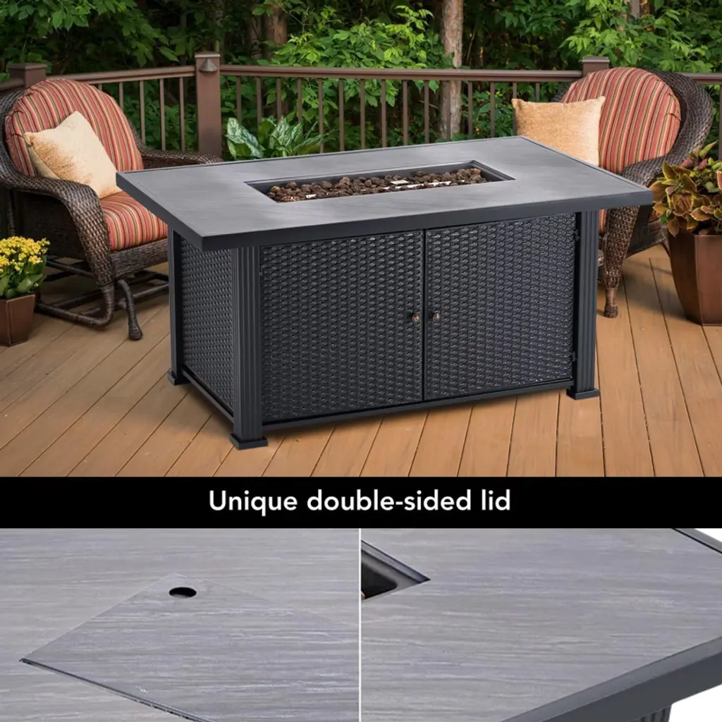 Outdoor Propane Fire Pit 52inch, 50000btu Gas Fire Pit Table With Cover And Rain Cover, Rectangle Gas Firepit Table For Patio Deck Garden Backyard